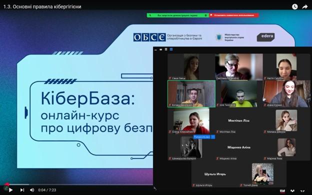 The Head of the Department of Socio-Economic Disciplines of Sumy branch of KhNUIA, Svitlana VYHANIAILO, introduced students of the specialty "Law enforcement activities" to the online course CyberBase, which covers the basics of cyber hygiene for students and cadets of higher education institutions with specific learning conditions.