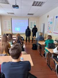 Tetiana Herashchenko, Associate Professor of the Department of Humanitarian Disciplines of Sumy Branch of KhNUIA, conducted a binary lesson on logic with students with the participation of practical police officers: police platoon № 3 troop of the Special Police Patrol Service “Sumy” MDNP in Sumy region, Police Corporal Bohdan Pilhui and police response sector of the patrol police of Shchastyn Regional Department of Police MDNP in Luhansk region, police corporal Oleksii Smolevskyi.
