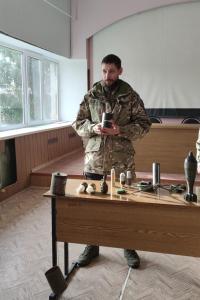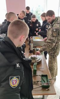 In accordance with the principles of practice-oriented training implemented at Sumy branch of KhNUIA, the head of the Department of Socio-Economic Disciplines, Olena Lukianykhina, conducted a binary class on the discipline "Personal Safety of a Policeman" with the participation of the senior inspector of the Explosives Service of the MDNP in Sumy Region, Ivan Yelankin, and the policeman of this same unit of Yevhen Fediai.https://univd.edu.ua/uk/news/14505