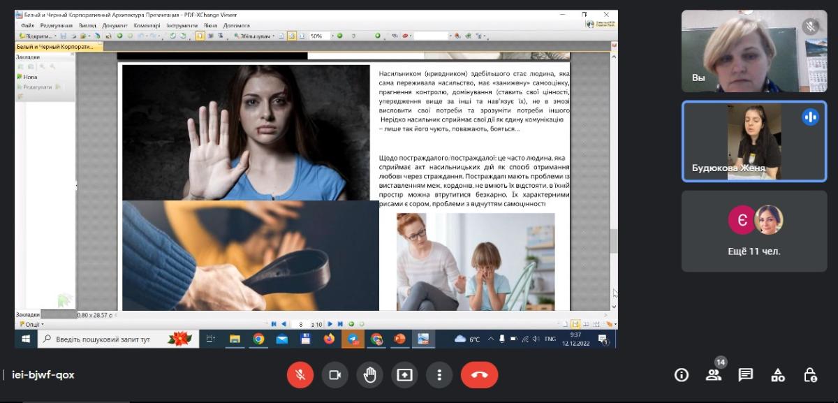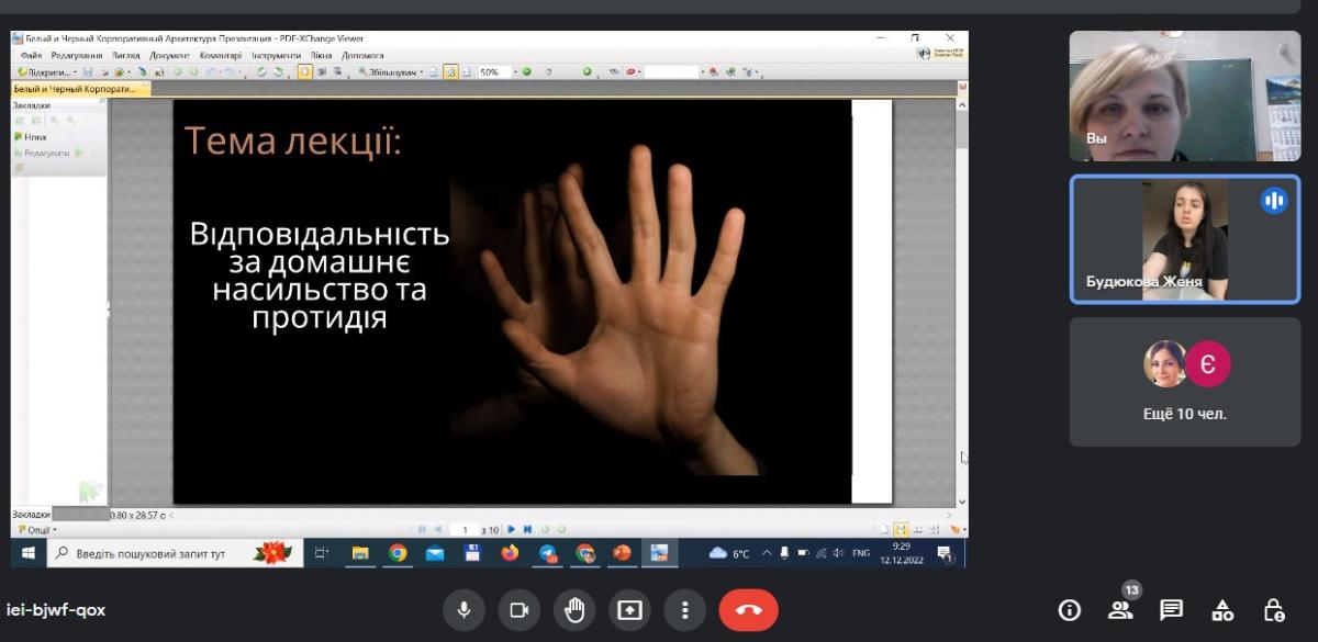 Students of the 4th year of the "Law" specialty of Sumy branch of KhNUIA, Yevhenia Budiukova and Yevhenia Kovalenko, under the guidance of assistant professor of the Department of Socio-Economic Disciplines Liudmyla Parfentii, gave a lecture on the topic "Domestic violence" : responsibility and combating"