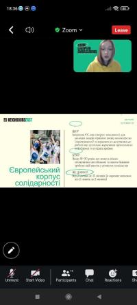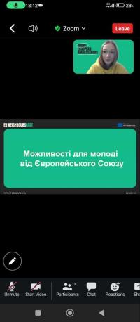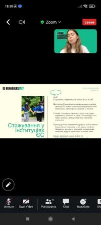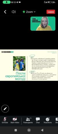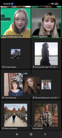 Higher education applicants of Sumy branch of Kharkiv National University of Internal Affairs, 1st year cadet Victoriia Yarova and 1st year students majoring in Law Enforcement Nataliia Zakablukivska and Diana Lukianenko took part in an online meeting held within the framework of the School of Ambassadors on the topic "EU opportunities for young people", organized by Sumy Promotion Agency.