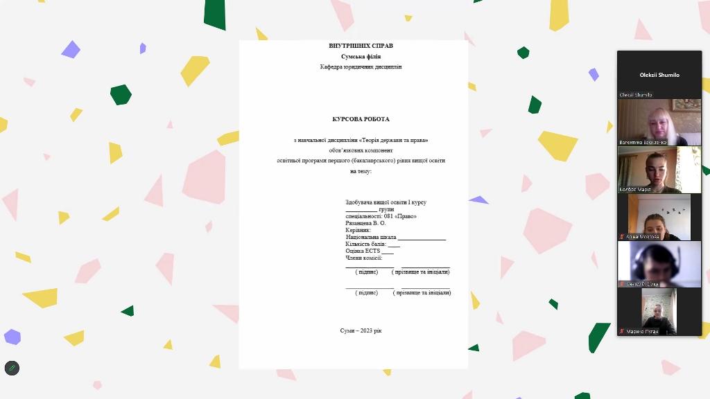 Valentyna Vasylenko, Head of the Department of Humanities of Sumy Branch of KhNUIA, together with Oleksii Shumilo, Professor of the Department of Legal Disciplines of Sumy Branch of KhNUIA, conducted a binary online class in the disciplines "Ukrainian Language for Professional Purposes" and "Theory of State and Law" for 1st year students majoring in Law.