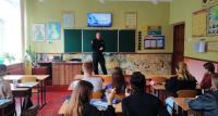 Maksym Ananko, a first-year cadet of Sumy branch of Kharkiv National University of Internal Affairs, held a series of meetings with school graduates from his hometown of Buryn, Sumy region. He acquainted school graduates with the history of the university, educational services that can be obtained at Sumy branch, demonstrated career guidance materials on the peculiarities of admission to Kharkiv National University of Internal Affairs in 2023