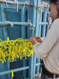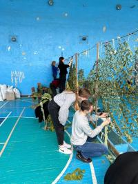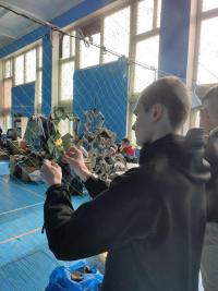 The 2nd year cadets of Sumy branch of Kharkiv National University of Internal Affairs are active participants in volunteer activities and help the masters of the volunteer center "Mirror of Goodness" to cut ribbons and weave camouflage nets for the defenders of our country.