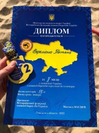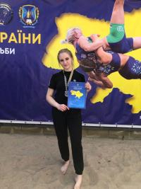 Tatiana Veremiienko, a 2nd year cadet of Sumy Branch of Kharkiv National University of Internal Affairs, became a silver medalist at the Ukrainian Beach Wrestling Championship among cadets and juniors. More than 170 athletes from 13 regions of the country competed in the championship, which took place in Rivne region.