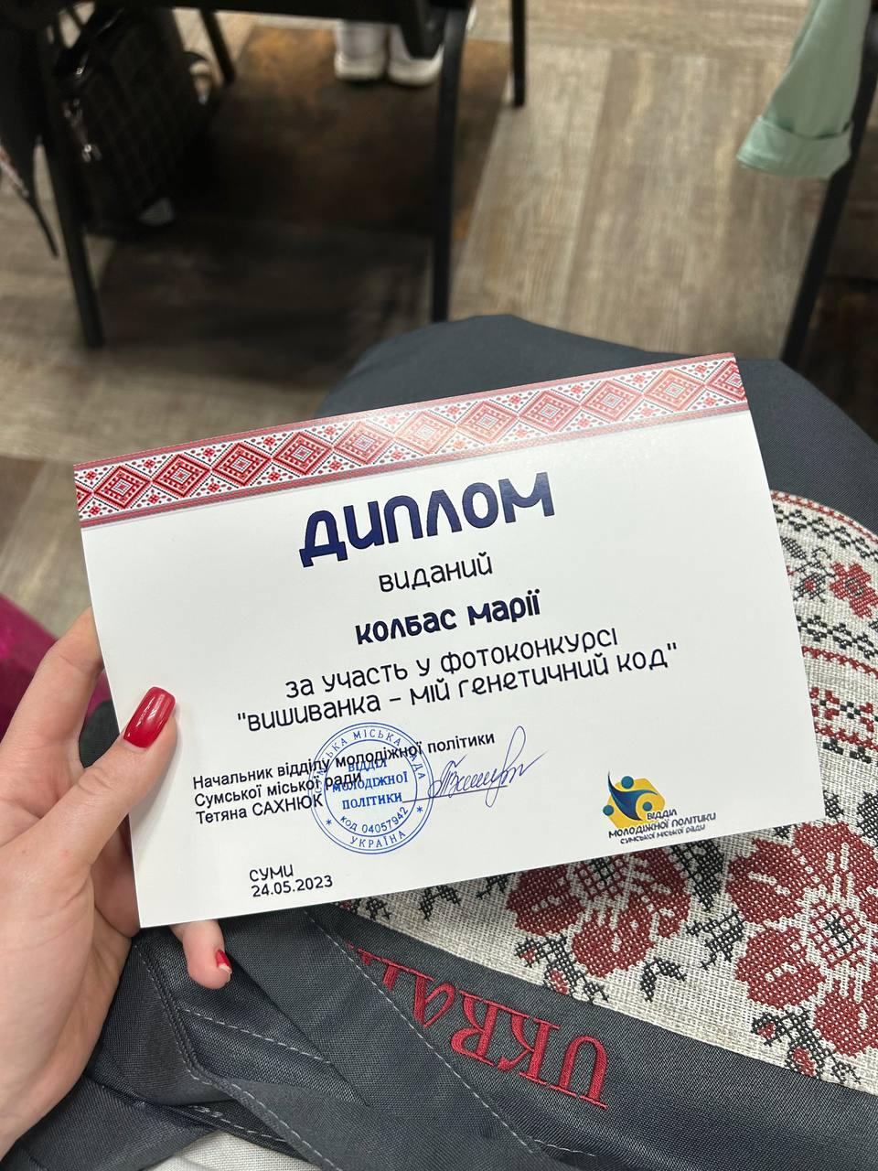 Mariia Kolbas, a first-year student of Sumy Branch of Kharkiv National University of Internal Affairs, took part in the photo contest "Vyshyvanka is my genetic code". The event was organized by the Youth Policy Department of Sumy City Council and was held on the Telegram channel through online voting.
