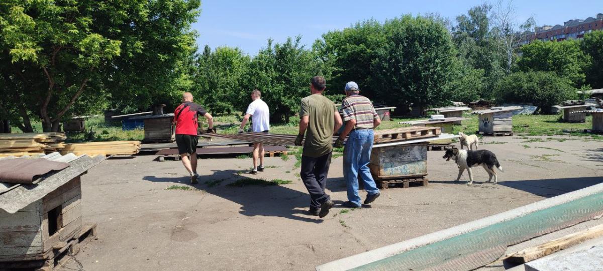 The 2nd year cadets of Sumy branch of Kharkiv National University of Internal Affairs Vadym Omelchenko, Anton Pustohvar, Oleksandra Abashkova, Alna Yushchenko, Anastasiia Syniakova and Olena Letvinenko visited Sumy Society for the Protection of Animals, which takes in dogs from Kherson region.
