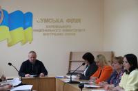 The final meeting of the Academic Council of Sumy Branch of Kharkiv National University of Internal Affairs in the current academic year was held. The Chairman of the Academic Council Serhii Lukash introduced and congratulated the newly elected Chairman of the Student and Cadet Parliament of the branch - 1st year cadet Victoriia Yarova.