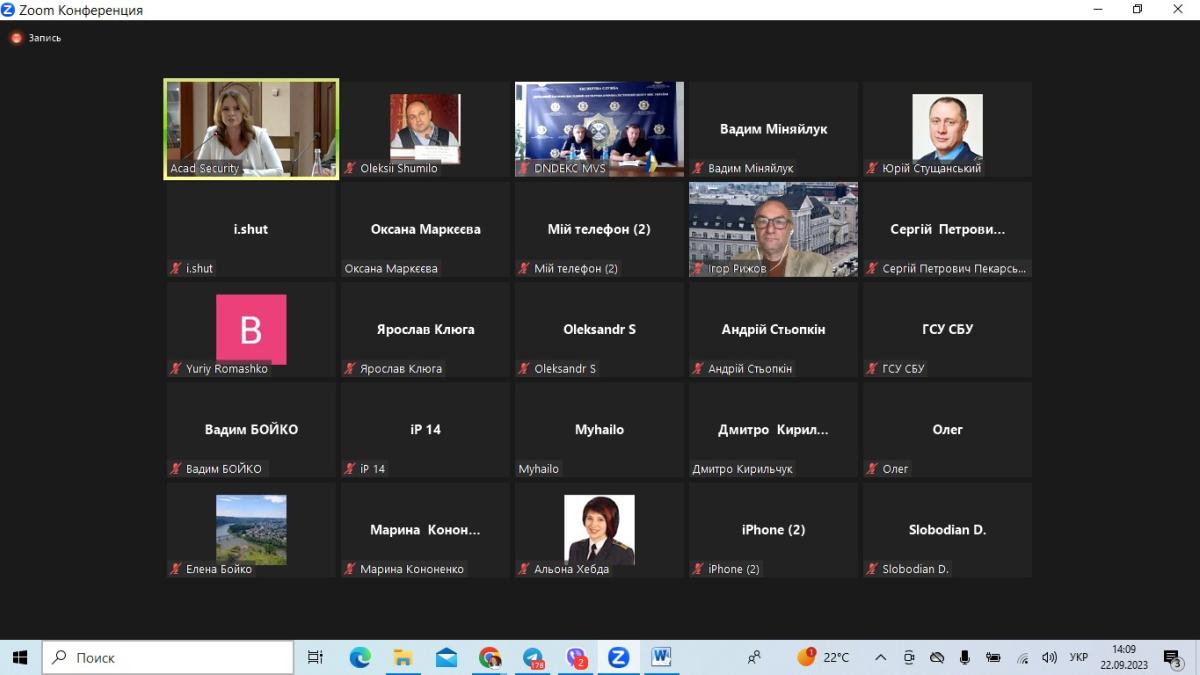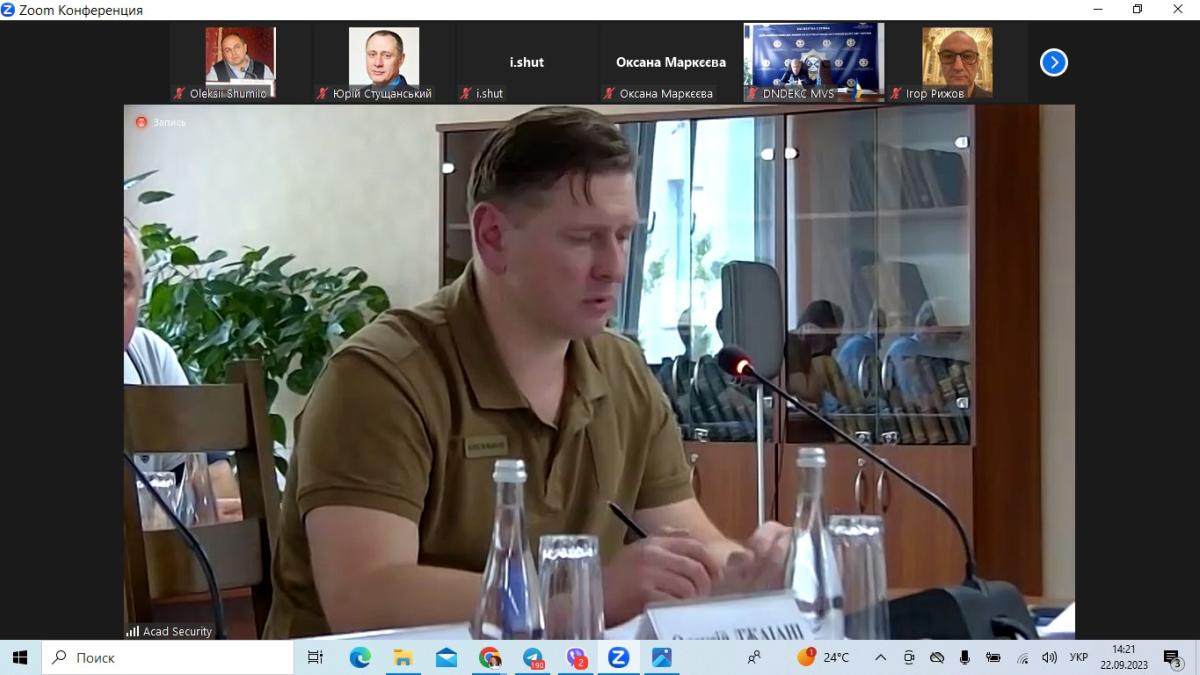 Oleksii Shumilo, Professor of the Department of Legal Disciplines of Sumy Branch of KhNUIA, together with the second-year master student of the branch Maryna Haidar, took part in the round table "Topical issues of improving anti-terrorist security in Ukraine under martial law", which was held at the National Academy of the Security Service of Ukraine.