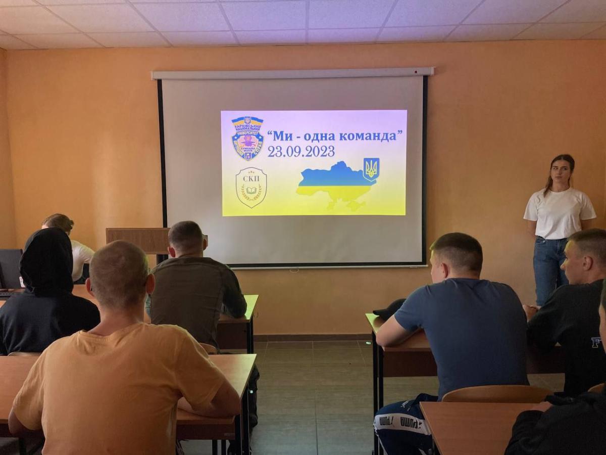 At Sumy branch of Kharkiv National University of Internal Affairs, the Student Parliament held a quest dedication "We Are One Team" for first-year cadets. During the event, each platoon completed tasks aimed at team building.