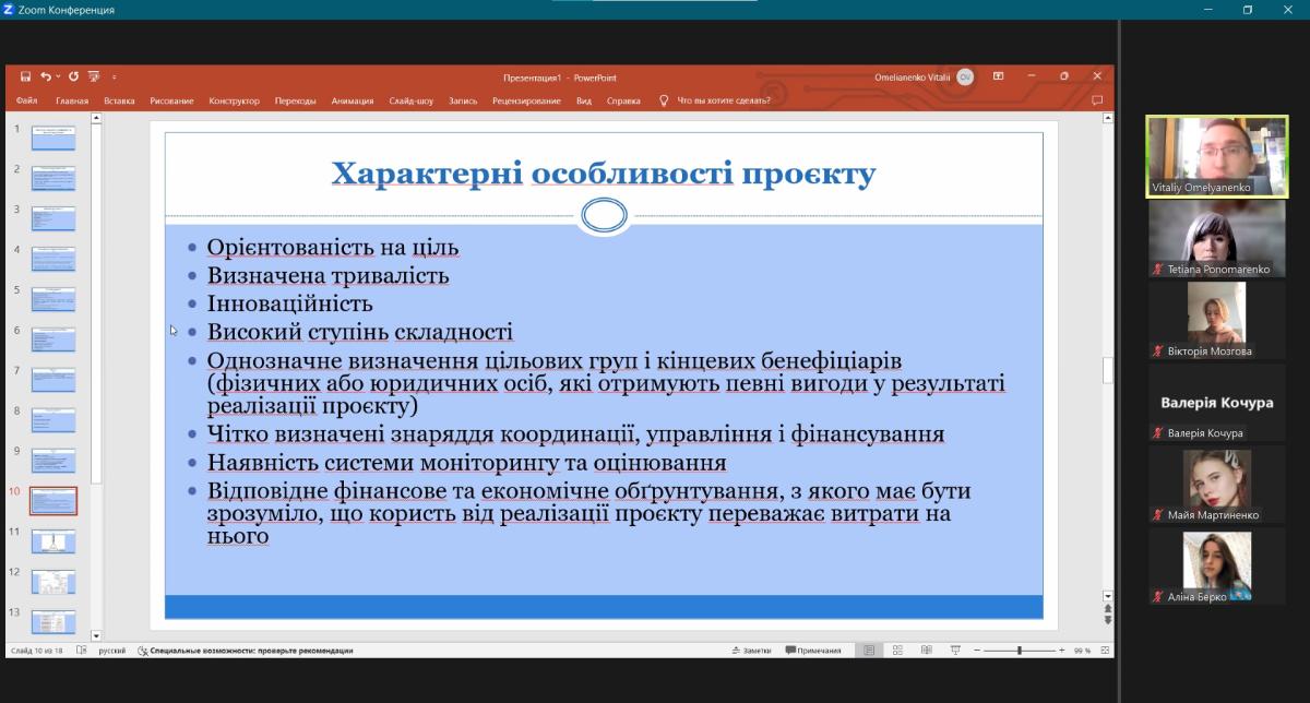 Associate Professor of the Department of Humanities of Sumy Branch of KhNUIA, Candidate of Philosophy Tetiana Ponomarenko and Academician of the Ukrainian Technological Academy, Professor of the Department of Business Economics and Administration of Sumy State Pedagogical University, Doctor of Economics, Associate Professor Vitalii Omelianenko conducted an integrated lesson