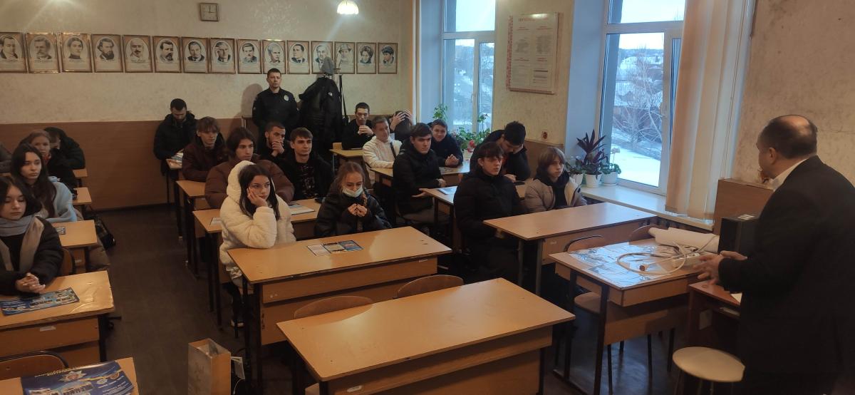 The Juvenile Prevention Department of the Preventive Activity Department of the Main Department of the National Police in Sumy Region organized a meeting of representatives of Sumy Branch of KhNUIA with students of Sumy Construction College. Professor of the Department of Legal Disciplines Oleksii Shumilo told students about the benefits of legal education