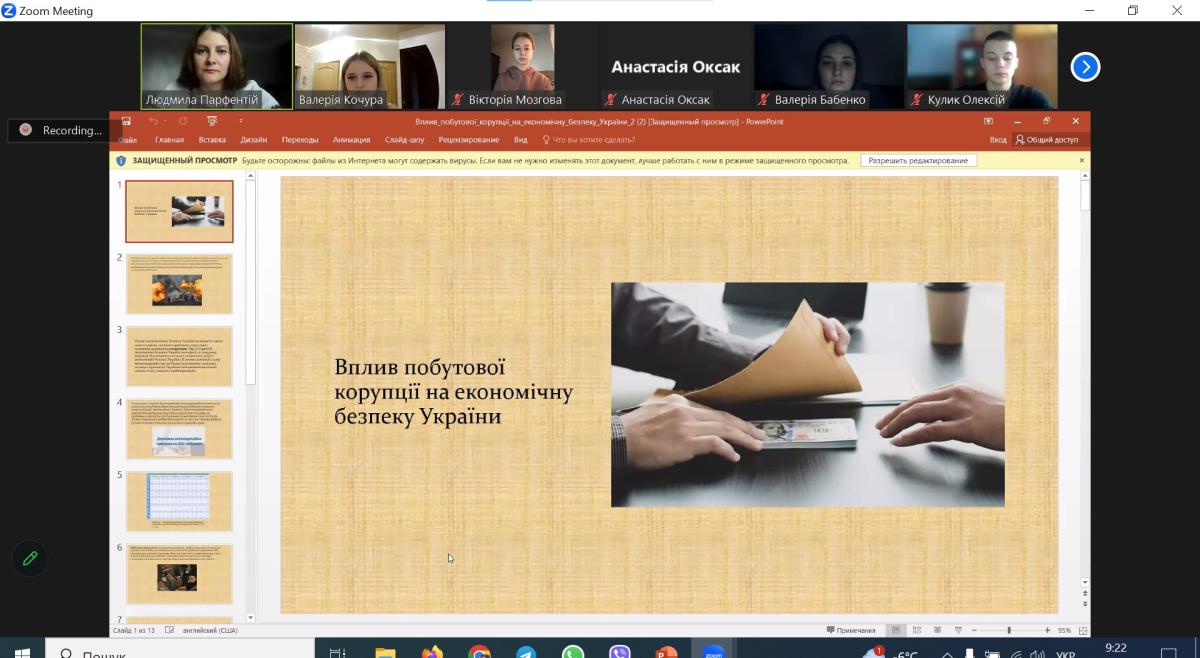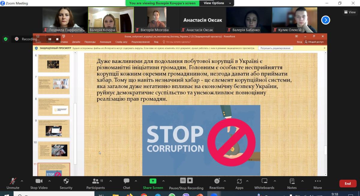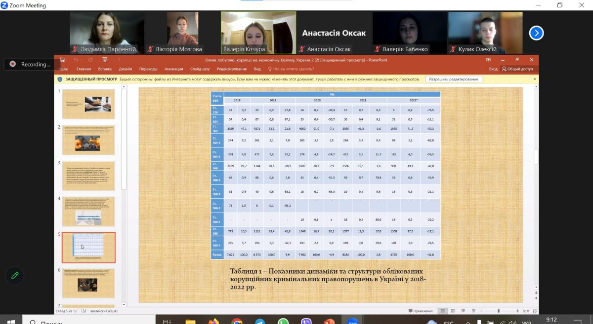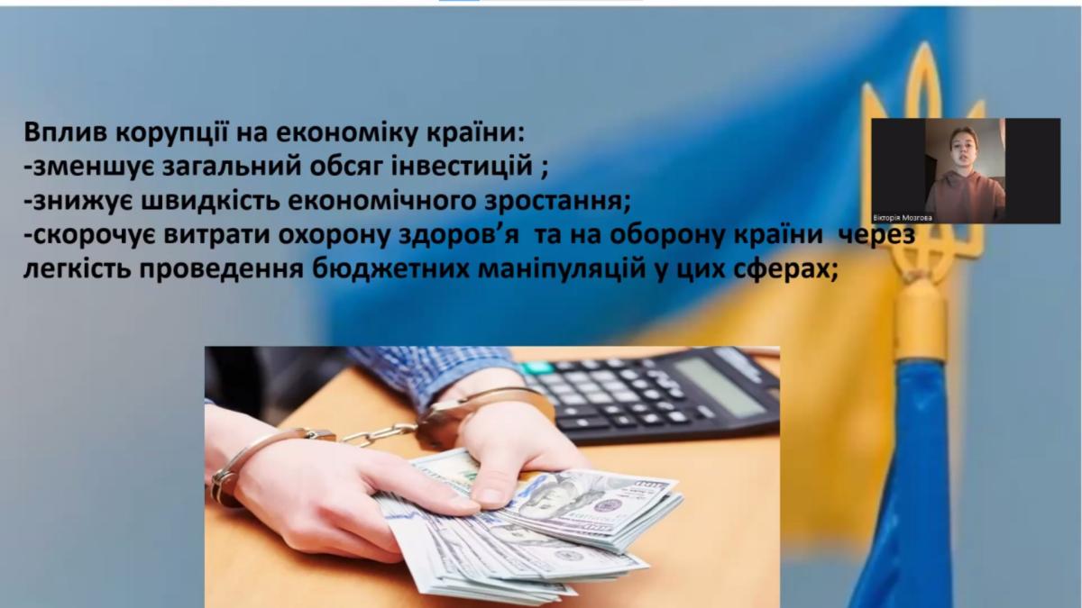 On the occasion of the International Anti-Corruption Day, a meeting of the section "Problematic Aspects of Ensuring Economic Security of the State" of the scientific student and cadet club of the Department of Socio-Economic Disciplines of Sumy Branch of Kharkiv National University of Internal Affairs "Actual Problems of National Economic Development in the Context of Globalization" was held.