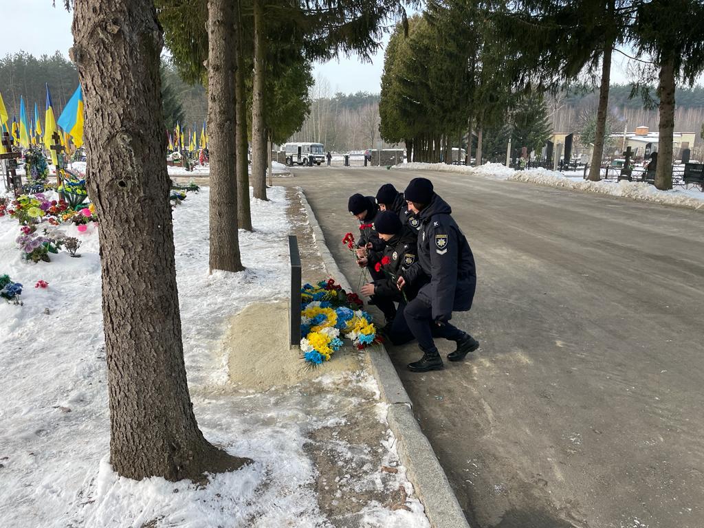On the occasion of the Day of the Armed Forces of Ukraine, the cadets of Sumy branch of Kharkiv National University of Internal Affairs put flowers at the memorial sign on the Alley of Heroes and honored the bright memory, courage, strength of spirit, resilience and heroic deeds of the soldiers who gave their lives for the independence, sovereignty and territorial integrity of our country with a minute of silence.