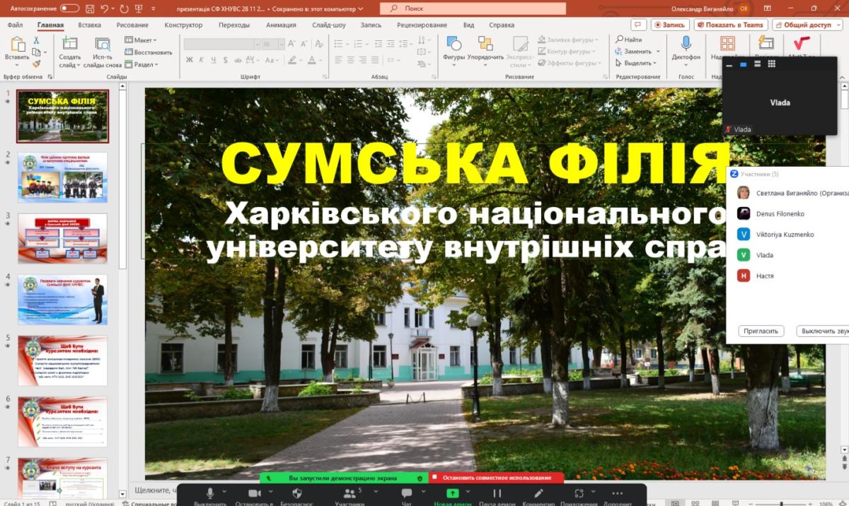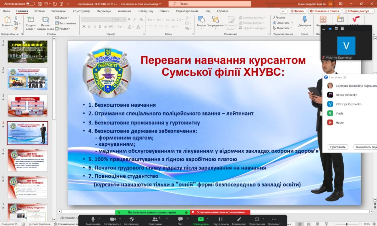 Associate Professor of the Department of Socio-Economic Disciplines Svitlana Vyhaniailo met with 11th grade students of Nedryhailiv Specialized Secondary School of I-III grades and presented Sumy Branch of Kharkiv National University of Internal Affairs to high school students.