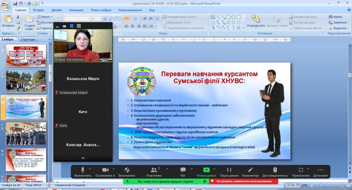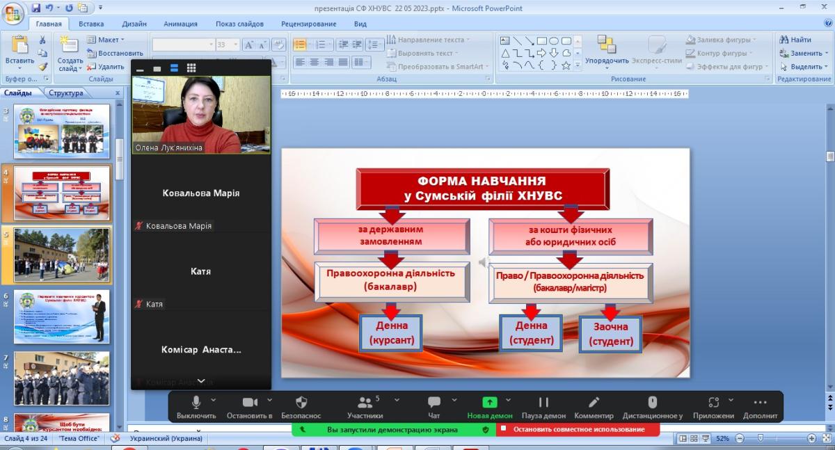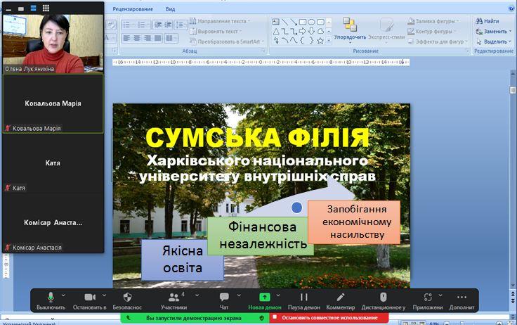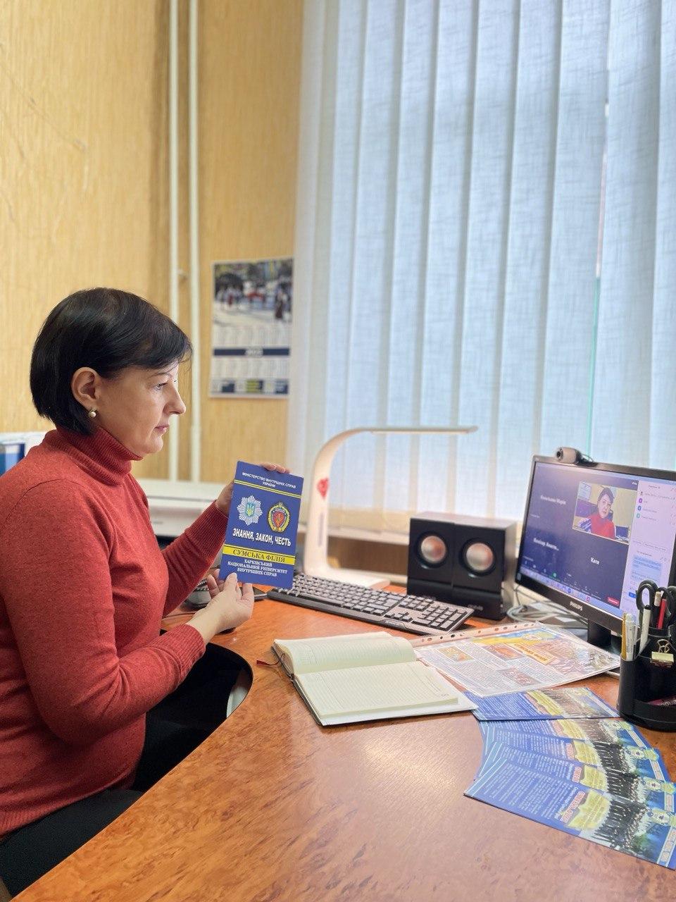 In cooperation with the leadership of Sumy Secondary School No. 27, Olena Lukianykhina, Head of the Department of Socio-Economic Disciplines of Sumy Branch of KhNUIA, held an online career guidance conversation with 11th grade students on the topic "Quality Legal Education - the Path to Financial Independence".