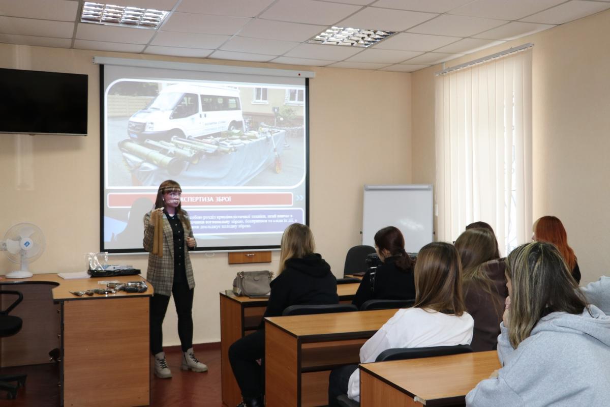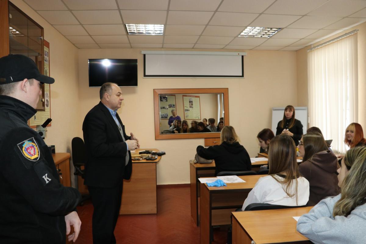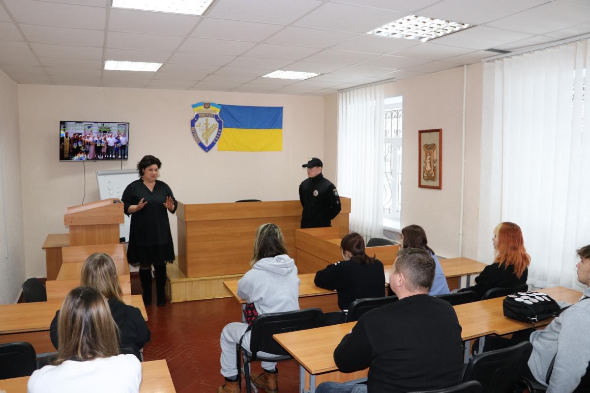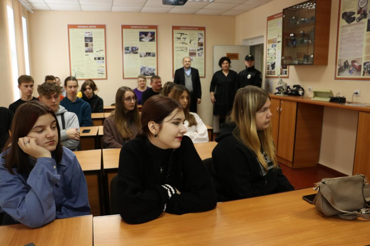 Within the framework of career guidance and the All-Ukrainian Law Week, the staff of the Department of Legal Disciplines of Sumy Branch - Head of the Department Oksana Panasiuk, Professor Oleksii Shumilo and Lecturer Yevheniia Manko with the participation of cadet Kyrylo Yeremenko - conducted an introductory tour of the branch for the students of Sumy Secondary School No. 19 of Sumy City Council. The director and teachers of the secondary school No. 19 also visited the higher education institution.
