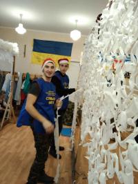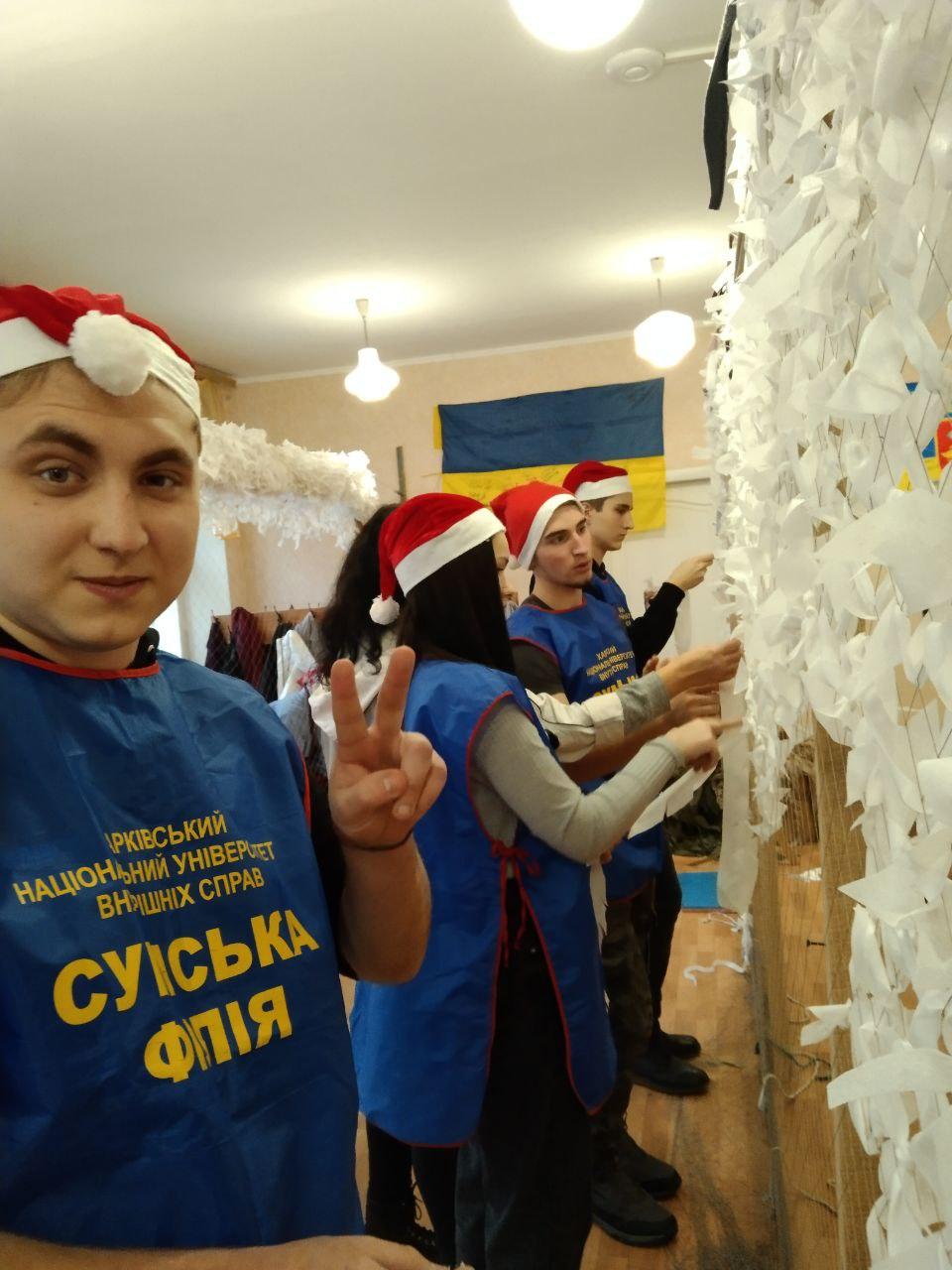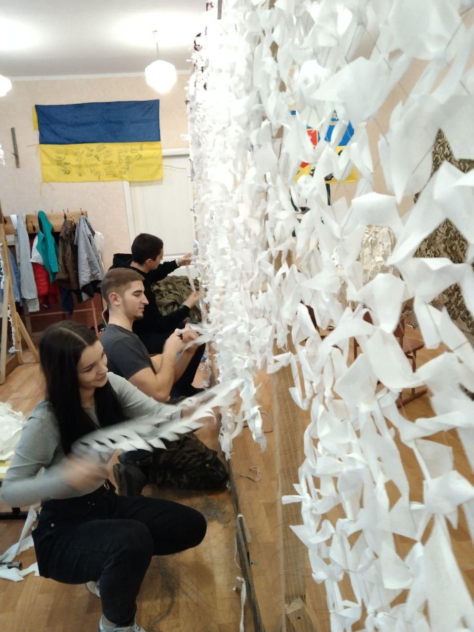 On the eve of the New Year, first-year students of Sumy branch of Kharkiv National University of Internal Affairs, who are studying law, joined the weaving of camouflage nets. After three hours of hard work, the first-year students, together with volunteers from the Motorized Hive Center, wove almost ten meters of winter netting.