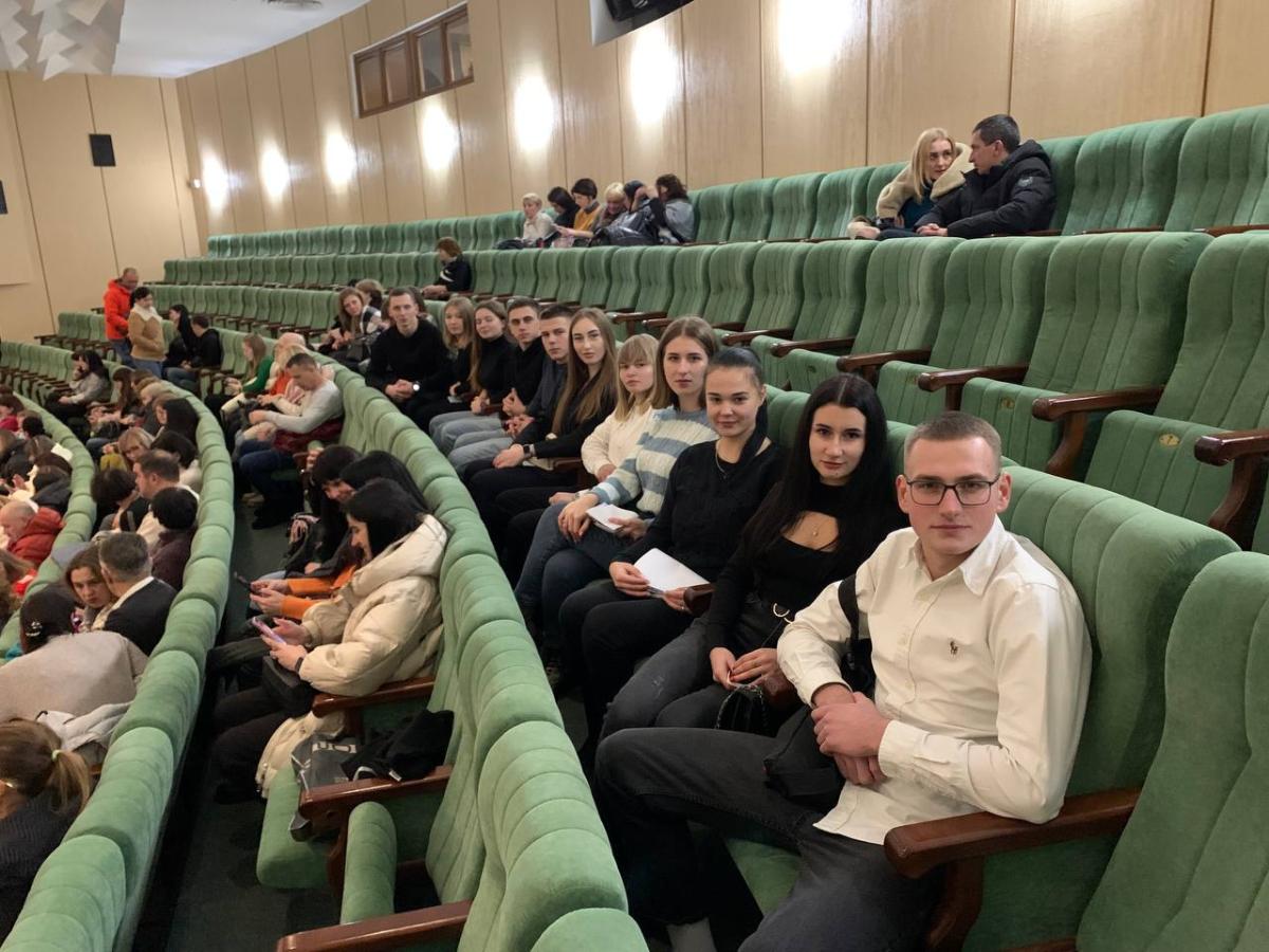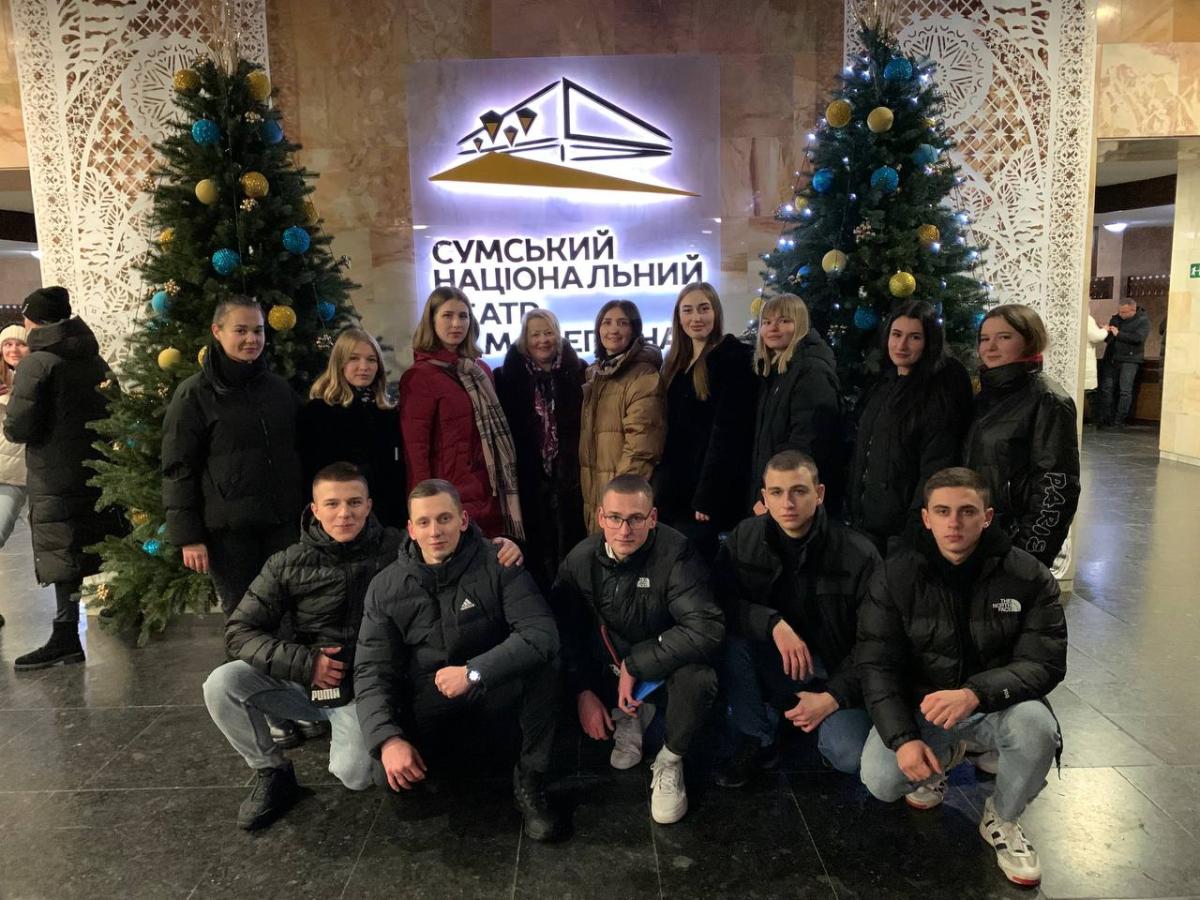 For the purpose of artistic and aesthetic education and spiritual enrichment of young people, a visit to Sumy National Theater of Drama and Musical Comedy named after Mykhailo Shchepkin was organized for higher education students of Sumy branch of KhNUIA. The youth watched a performance based on Mykolai Hohol's play "The Night Before Christmas".