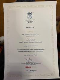 Mariia Ivakh, a second-year student of Sumy Branch of Kharkiv National University of Internal Affairs, took part in the Summer School "Indoctrination and Manipulation of Public Opinion as Algorithms for Gaining and Retaining Political Power in Europe" organized by Adam Mickiewicz University (Poznan, Poland).