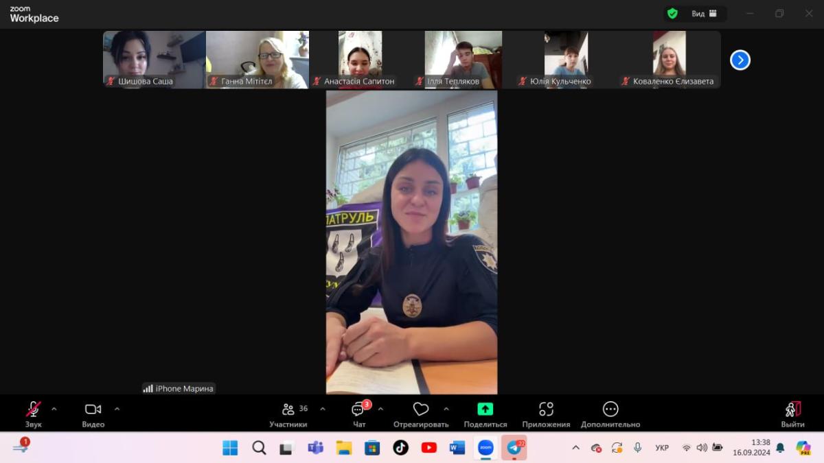 An informational and educational hour was organized and held for the first-year students of Sumy branch of Kharkiv National University of Internal Affairs with the participation of Maryna Horkovska, an inspector of the Public Relations Sector of the Patrol Police Department.