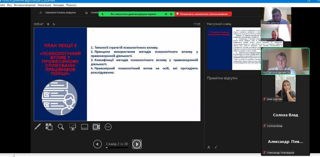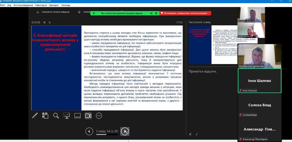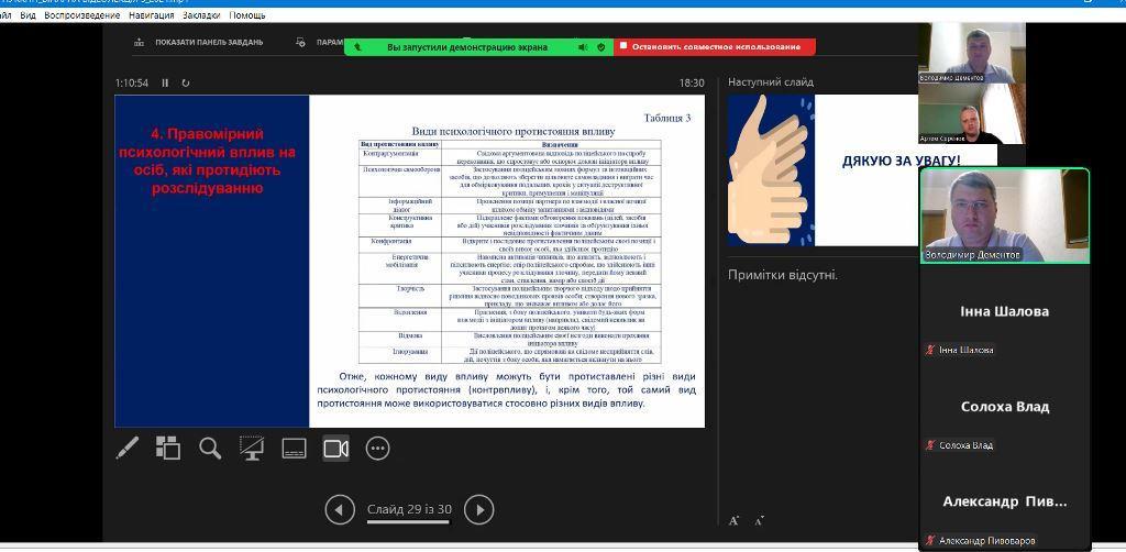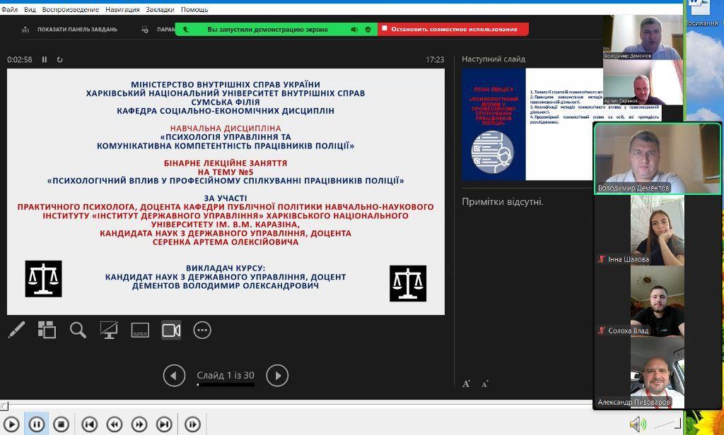 Volodymyr Dementov, Associate Professor of the Department of Socio-Economic Disciplines of Sumy Branch of KhNUIA, conducted an online class with elements of discussion on “Psychological Influence in Professional Communication of Police Officers” for 2nd year students majoring in Law Enforcement.