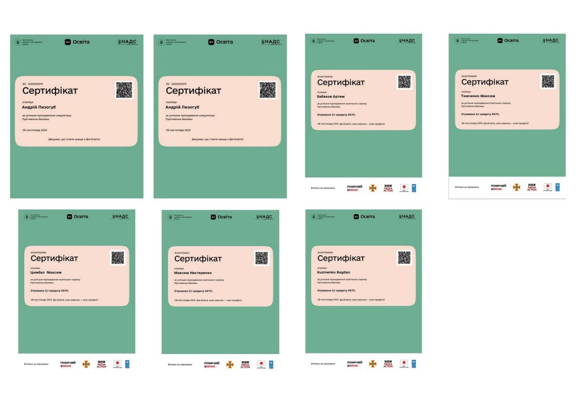Olena Lukianykhina, Professor of the Department of Socio-Economic Disciplines of Sumy Branch of Kharkiv National University of Internal Affairs, together with cadets studying law enforcement, took a course on mine safety on the Diia.Digital Education platform.