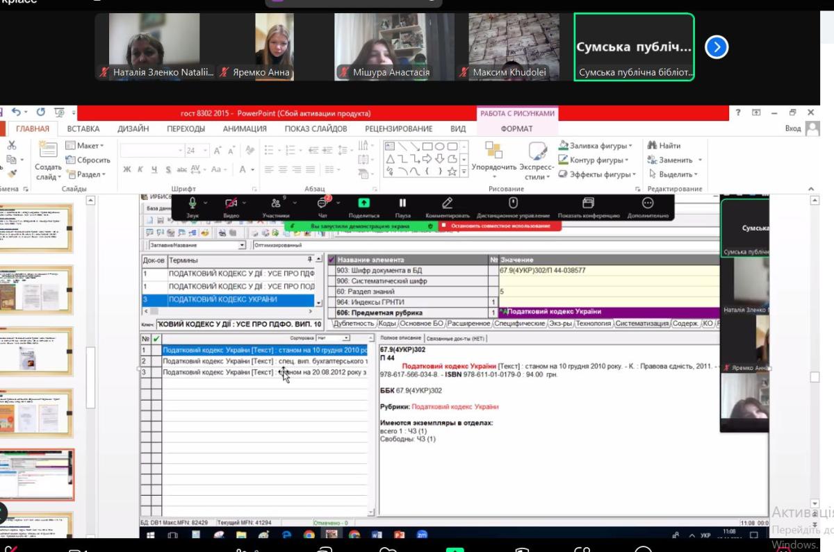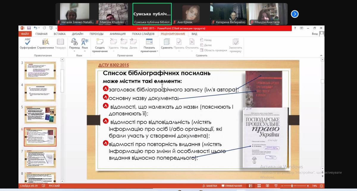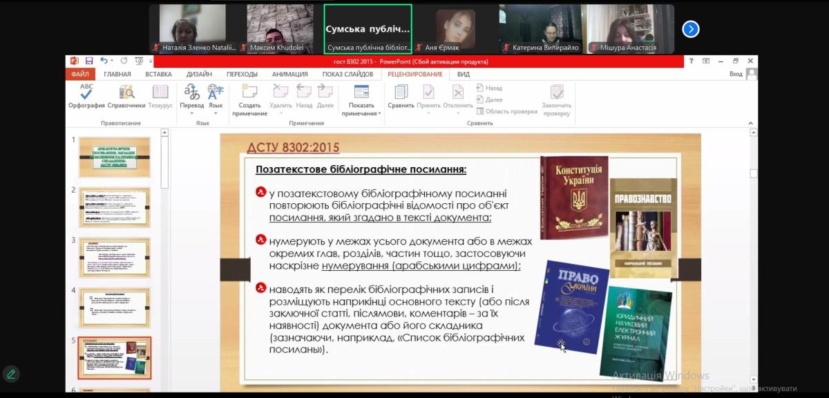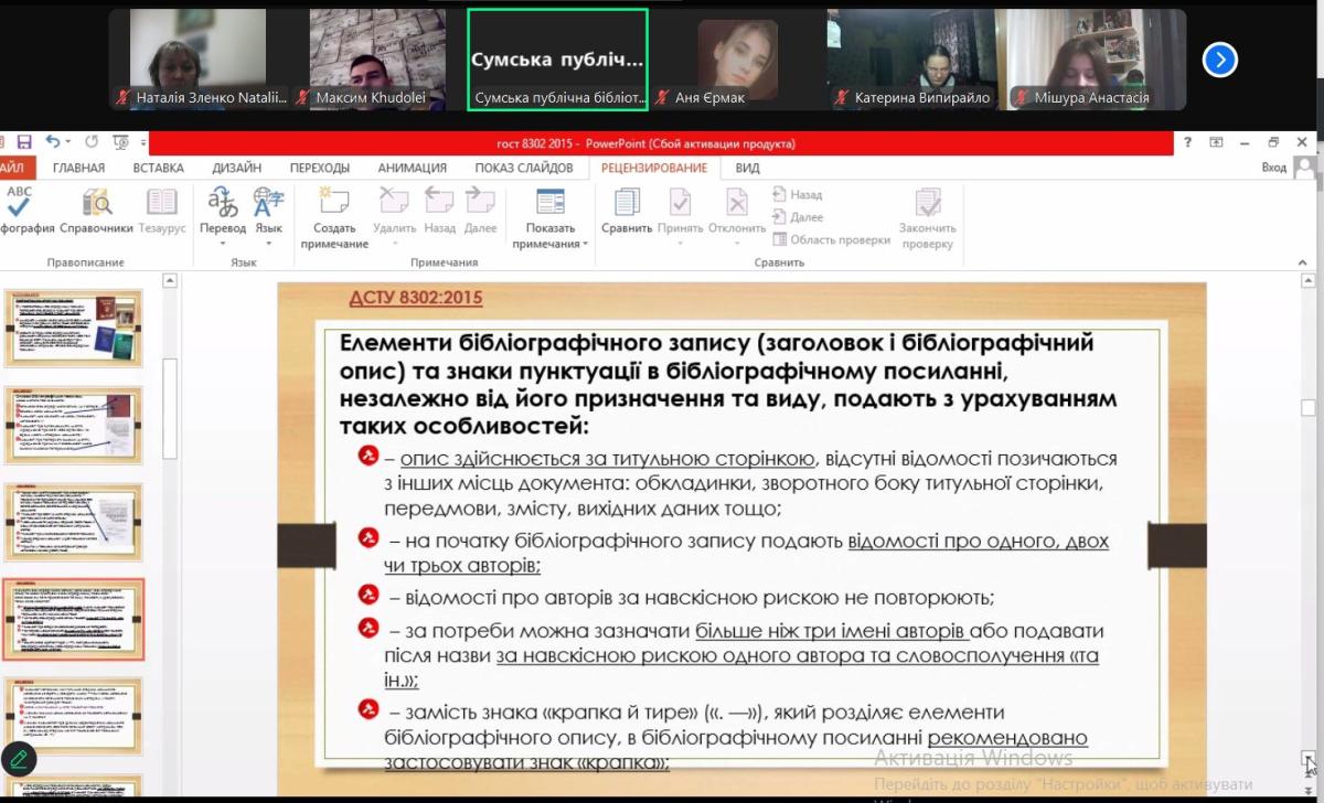For the first-year students, online classes were conducted by Liubov Klimachova, Head of the Department of Socio-Cultural Technologies and Reference and Information Work of Taras Shevchenko Central Library of Sumy, and Nataliia Zlenko, Associate Professor of the Department of Humanities.