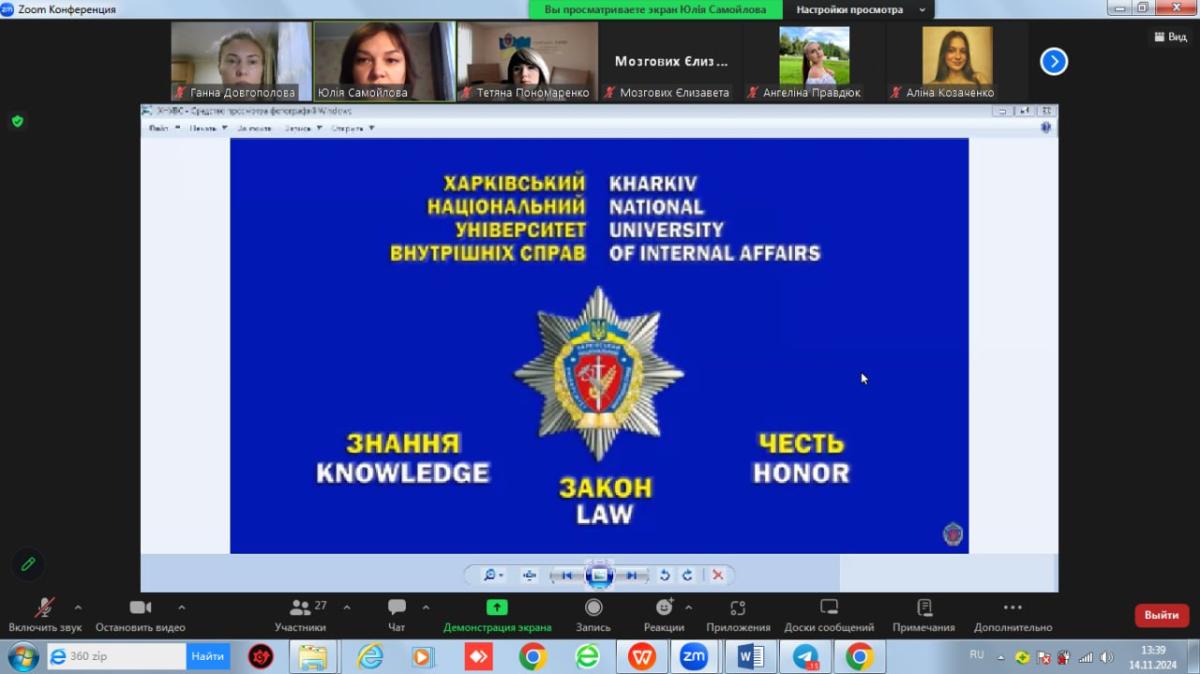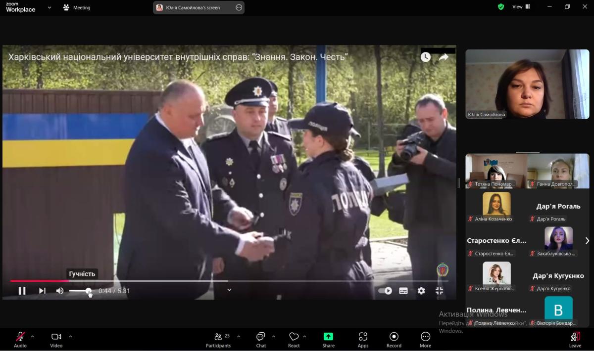 For students and cadets of the 3rd year and first-year students of the specialty "Law Enforcement Activities", an online lecture was held by curators - lecturers of the Department of Humanities Yulia Samoilova, Hanna Dovhopolova and Tetiana Ponomarenko.