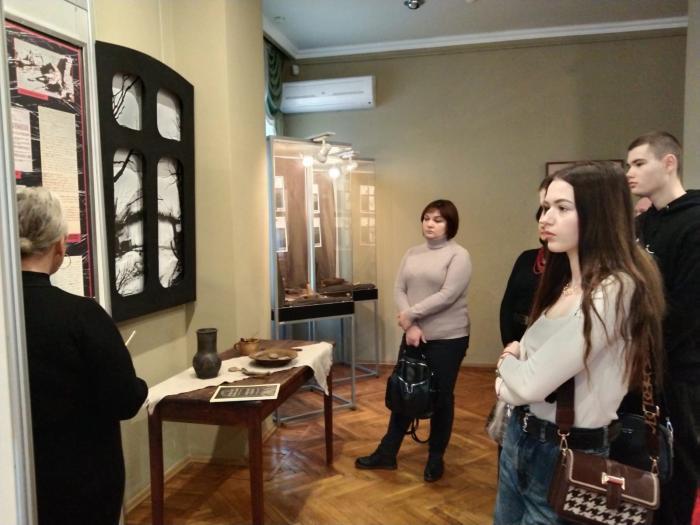 Students of Sumy branch of KhNUIA, together with curators Nadia Demydenko, Yulia Samoilova, and Anna Mititiel, a specialist in the Department of Educational and Social and Humanitarian Work, visited a thematic exhibition at Sumy Regional Museum of Local Lore, dedicated to the memory of the victims of the Holodomor of 1932–1933.