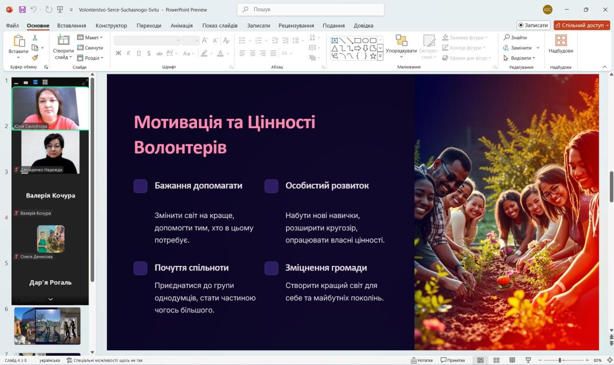 Curators of educational groups of Sumy branch of KhNUIA Yulia Samoilova and Nadiia Demydenko held an educational event on the topic "Volunteering: the heart of the modern world" in order to draw attention to the importance of volunteering and motivate young people to actively participate in social projects.
