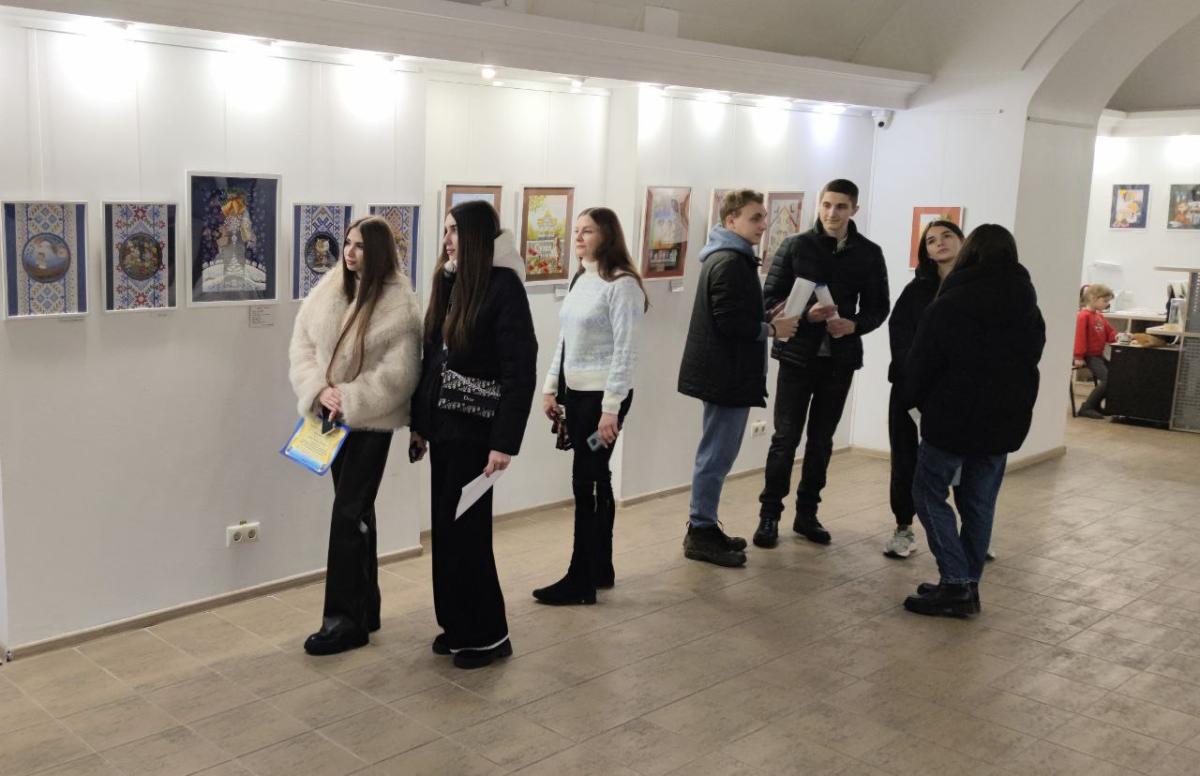The 2nd year students of Sumy branch of KhNUIA together with curators Olena Lukianykhina and Liudmyla Parfentii visited the exhibition ‘Christmas Chime. Angels’ by Sumy artist Anna Chernenko.