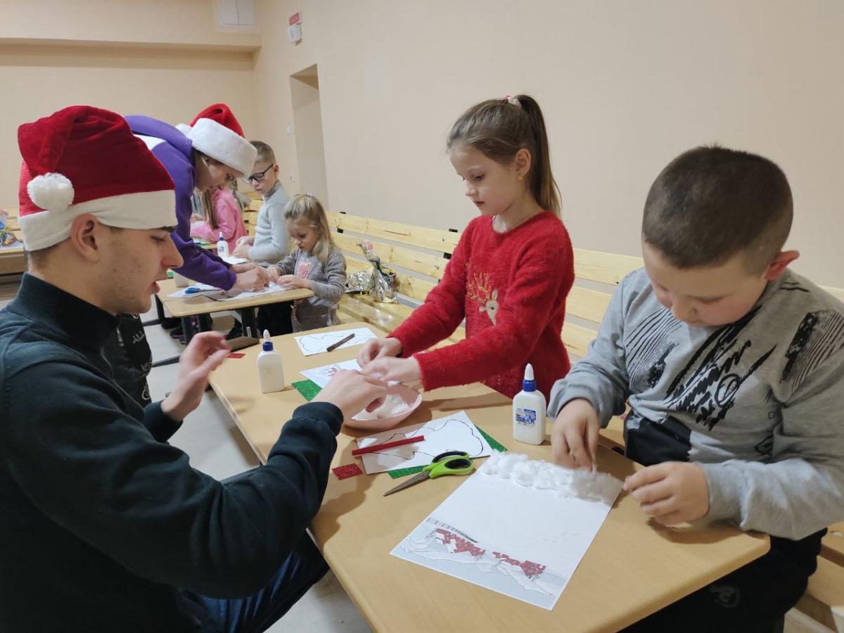 Within the framework of the project of the Ministry of Internal Affairs of Ukraine #Friendly Support, the first and second year students congratulated IDP children who are engaged in the circles of the Center for Culture and Leisure of Sumy City Council. The students prepared an interesting holiday program that included competitions and fun activities.