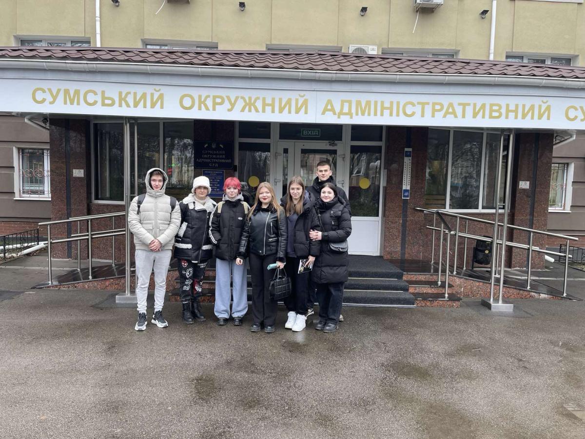 The Head of the Department of Legal Disciplines of Sumy Branch of KhNUIA, Oleksii SHUMILO, together with students, visited Sumy District Administrative Court in order to consolidate theoretical knowledge. The students were present at the court session, got acquainted with the peculiarities of the work of the court and the activities of its structural divisions.
