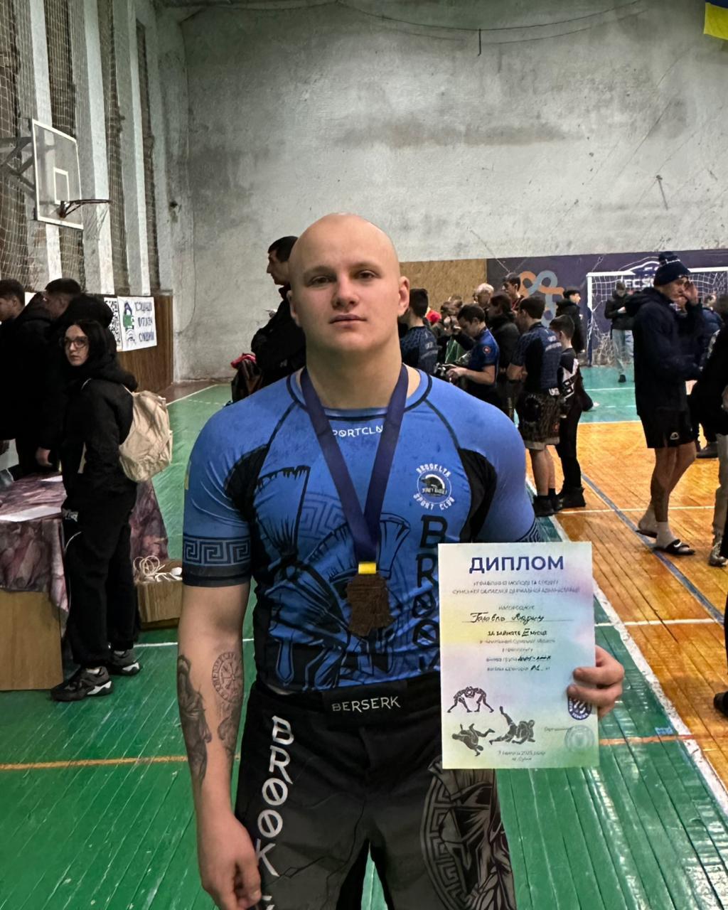 237 young men and women from all over Sumy region took part in the Ivan ZAKHARUK memory pankration and grappling championship of Sumy region. Vadym POLOVKO, a third-year student of Sumy branch of Kharkiv National University of Internal Affairs, demonstrated a high level of skill and became a bronze medalist in the weight category up to 92 kg.