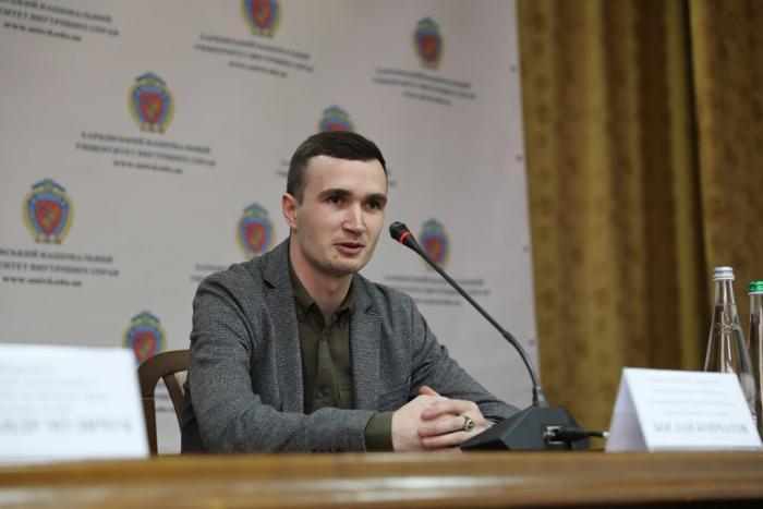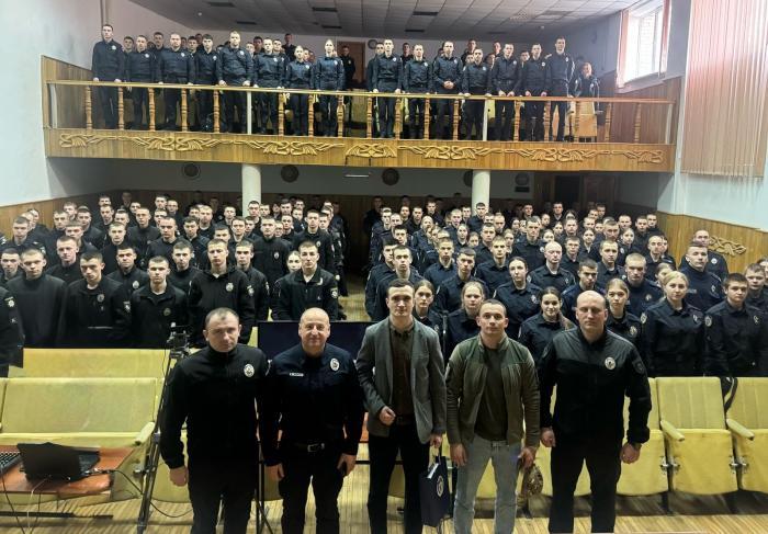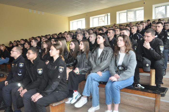 A meeting with a participant in hostilities, veteran and hero of the Russian-Ukrainian war, Captain of the Armed Forces of Ukraine Bohdan KOPCHATOV was held at all locations of KhNUIA for cadets and students of Educational and Research Institutes No. 1-5, which was organized by the Department of social and humanitarian work.