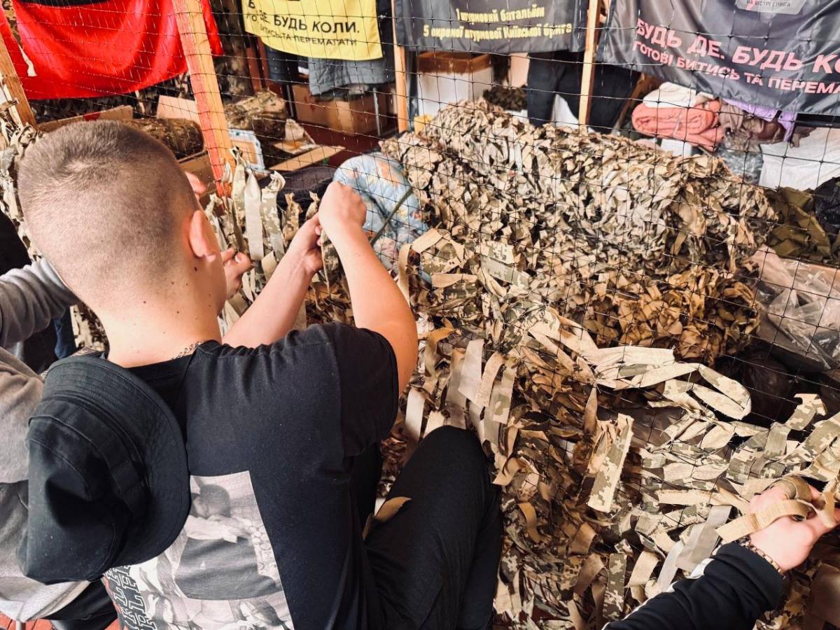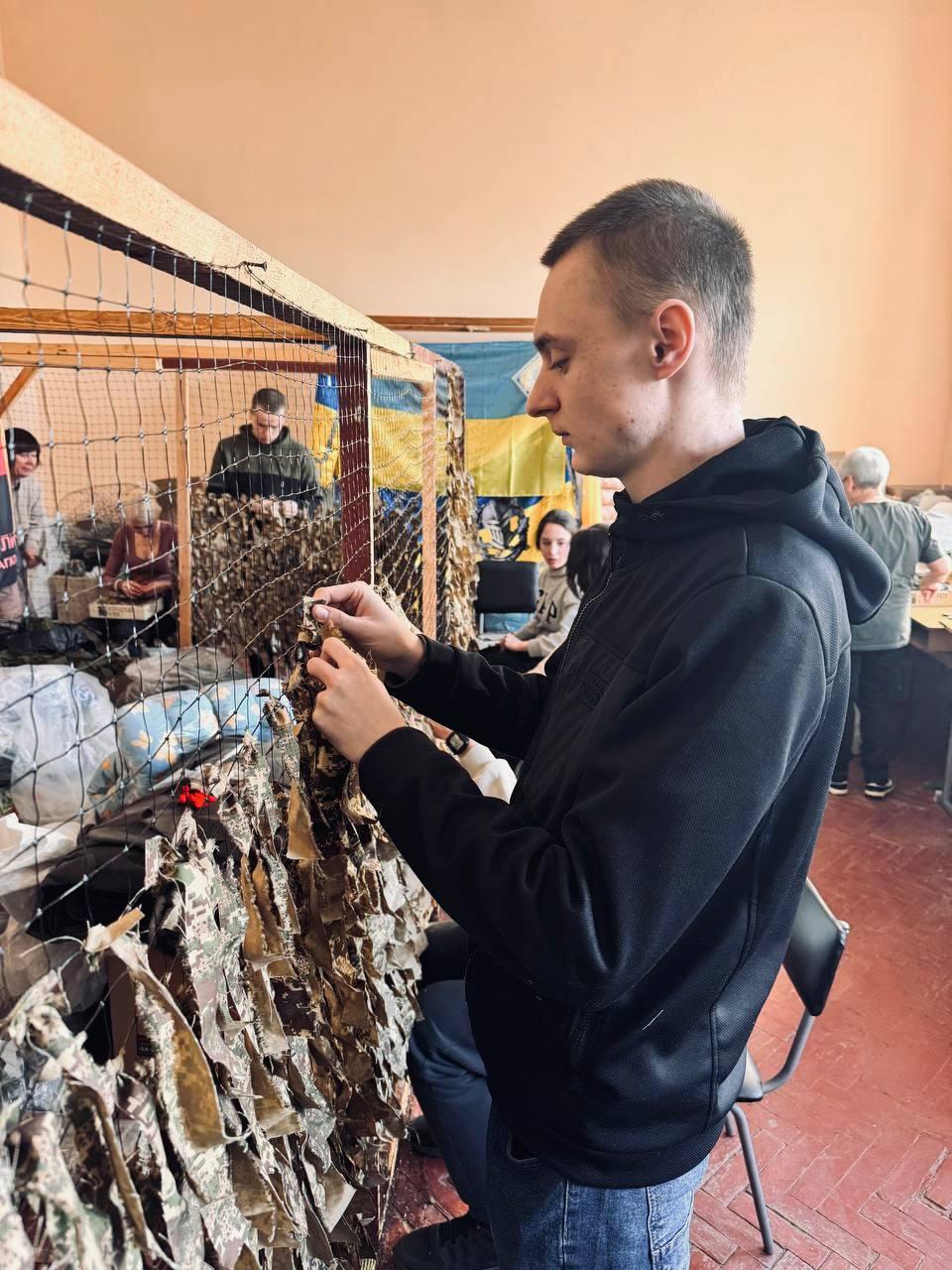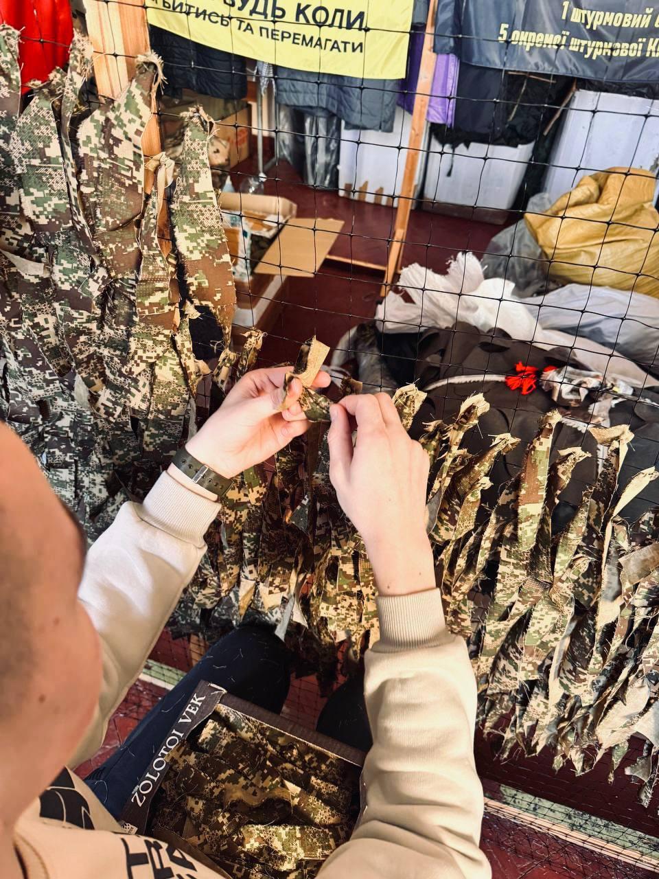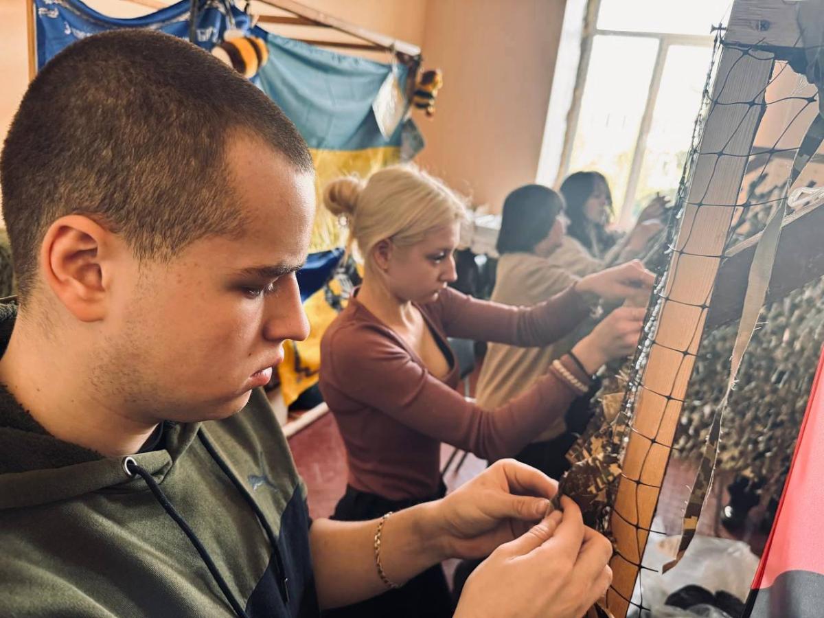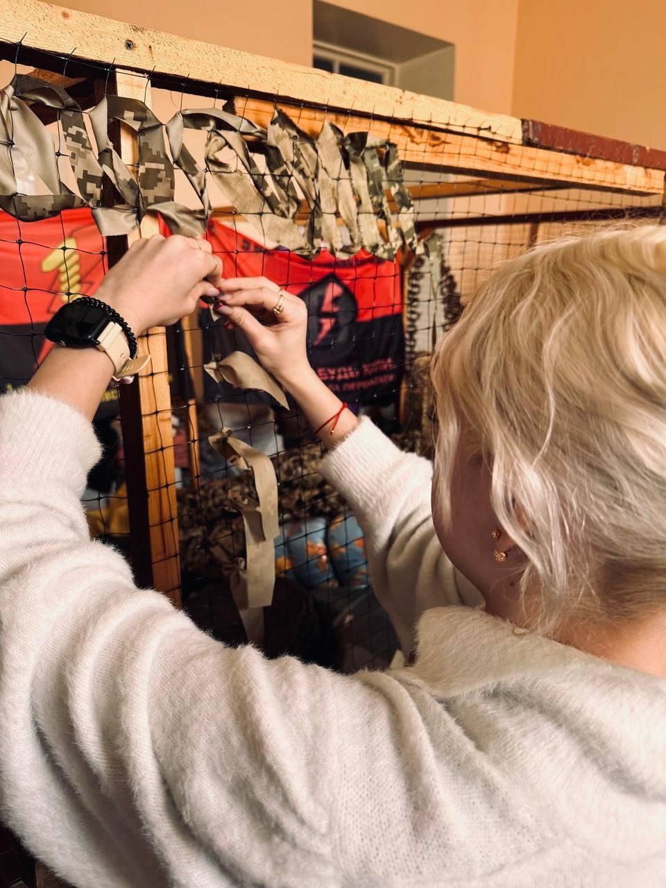 Weaving camouflage nets by students of Sumy branch of KhNUIA remains one of the extremely important initiatives. Every day, volunteers of the branch make their significant contribution to the common cause. Only in recent days, the cadets have made two camouflage nets with their own hands, which have already been transferred to the front.