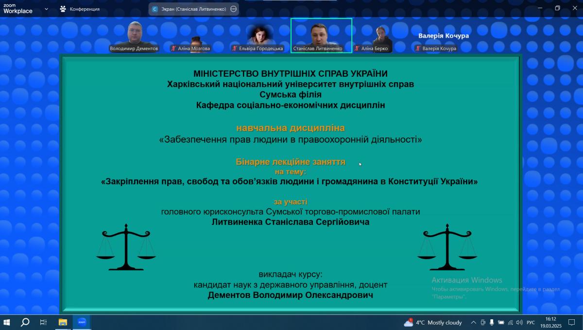 Бінарне заняття із Забезпечення прав людини в правоохоронній діяльності за участі головного юрисконсульта Сумської торгово-промислової палати