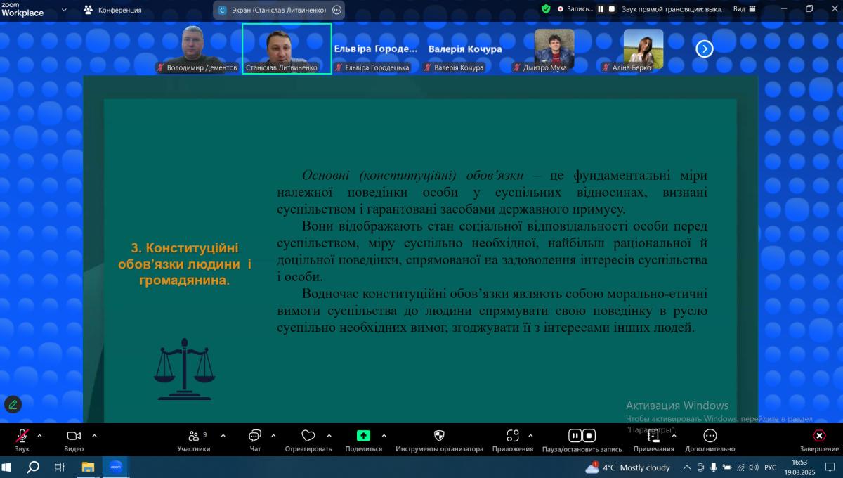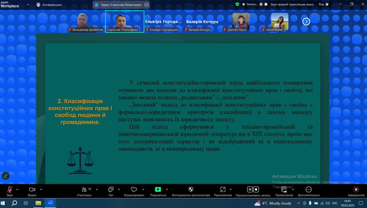 Associate Professor of the Department of Socio-Economic Disciplines of Sumy Branch of KhNUIA Volodymyr DEMENTOV organized and conducted an online lesson with elements of discussion for 3rd year higher education students majoring in "Law".