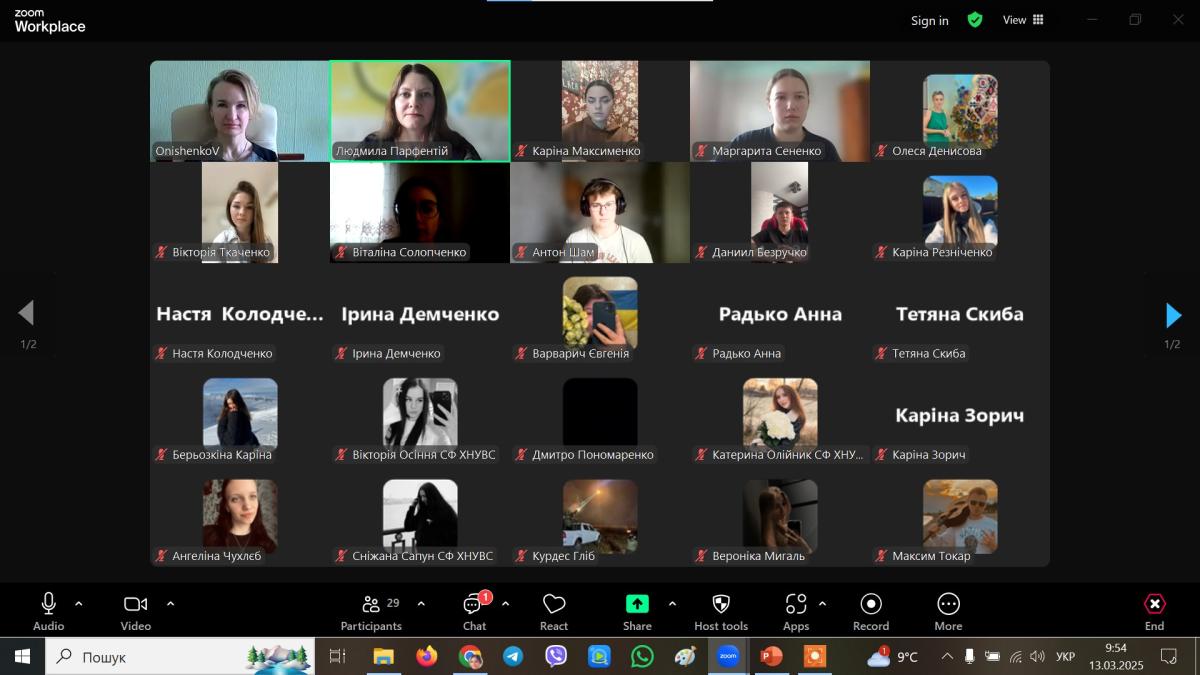Associate Professor of the Department of Socio-Economic Disciplines of Sumy Branch of KhNUIA Liudmyla PARFENTII, within the framework of studying the disciplines "Forensic Accounting" and "Accounting", organized online classes for students of 2-3 years studying in specialties 262 "Law Enforcement Activities" and 081 "Law".