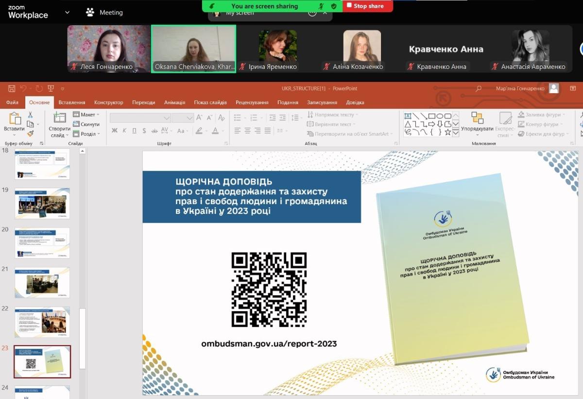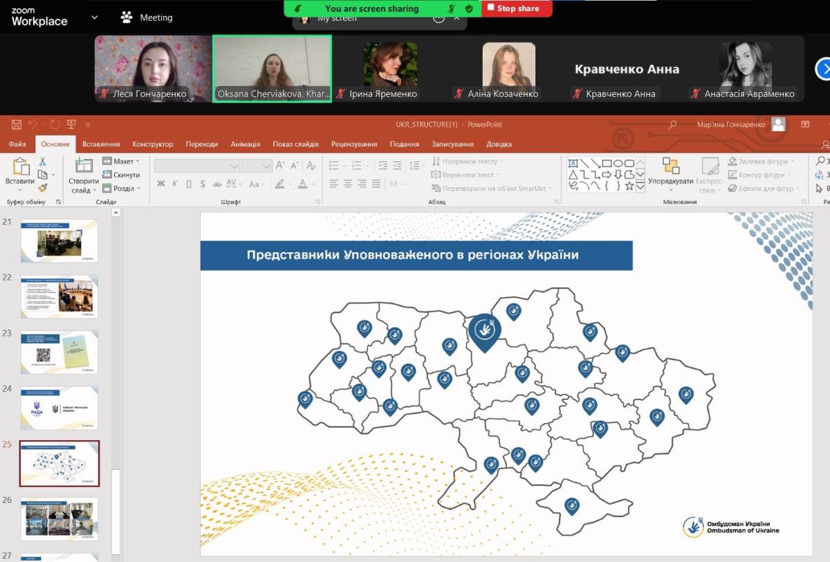 Associate Professor of the Department of Legal Disciplines of Sumy Branch of KhNUIA Lesia HONCHARENKO and the representative of the Commissioner for Human Rights of the Verkhovna Rada of Ukraine in Kharkiv region Oksana CHERVIAKOVA held a binary lesson for 1st year students of the specialty "Law Enforcement Activities".