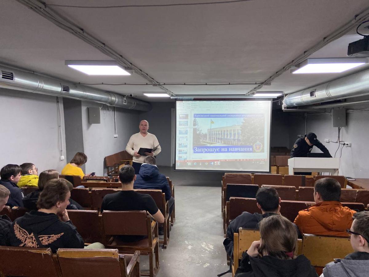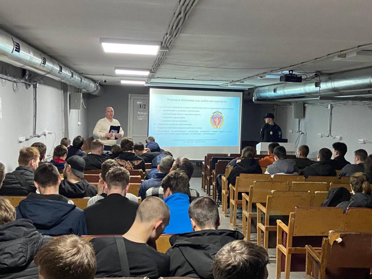 Senior lecturer of the Department of Legal Disciplines of Sumy branch of KhNUIA Andrii SIADRYSTYI, together with first-year cadets Daniil IVANCHYKHYN and Maksym TYMCHENKO, held a meeting with students of Higher Professional School No. 7 in Kremenchuk.