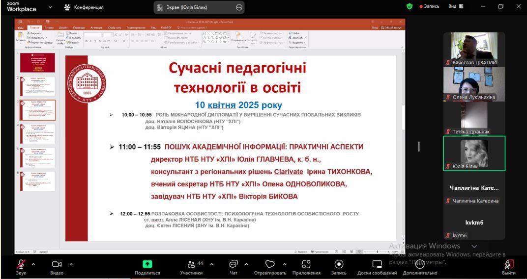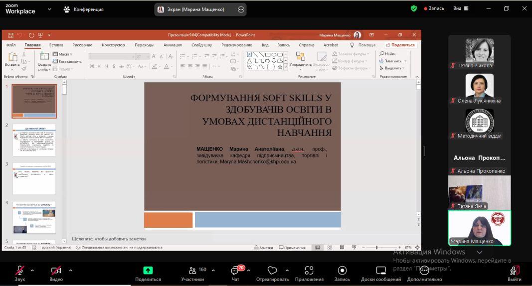 Professor of the Department of Socio-Economic Disciplines of Sumy Branch of KhNUIA Olena LUKIANYKHINA joined the work of the XXII International School-Seminar "Modern Pedagogical Technologies in Education". The event was organized by the National Technical University "KhPI" with the aim of improving the skills of scientific and pedagogical workers.