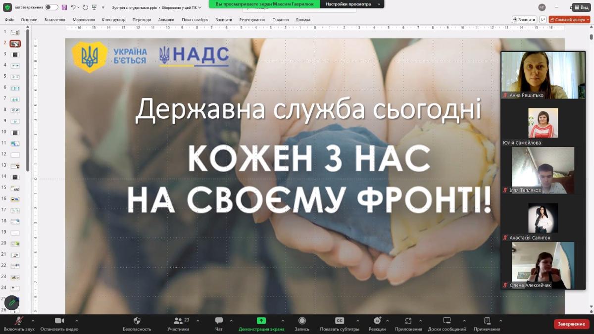 As part of the educational process in a foreign language, lecturers of the Department of Humanities of Sumy branch of KhNUIA Anna RESHYTKO and Yuliia SAMOILOVA organized and conducted a binary lesson for law enforcement students "The role of state bodies in preventing domestic violence."