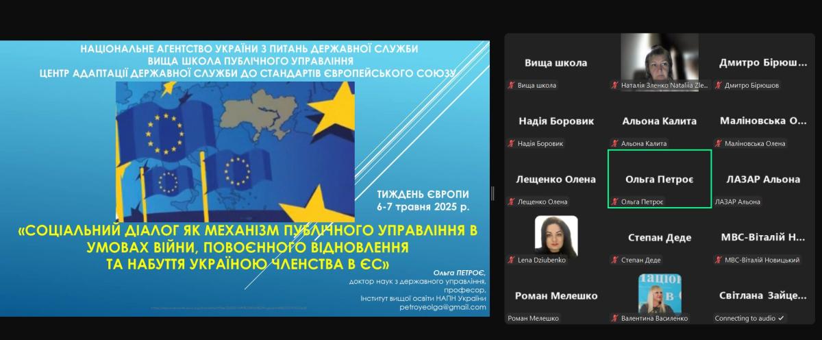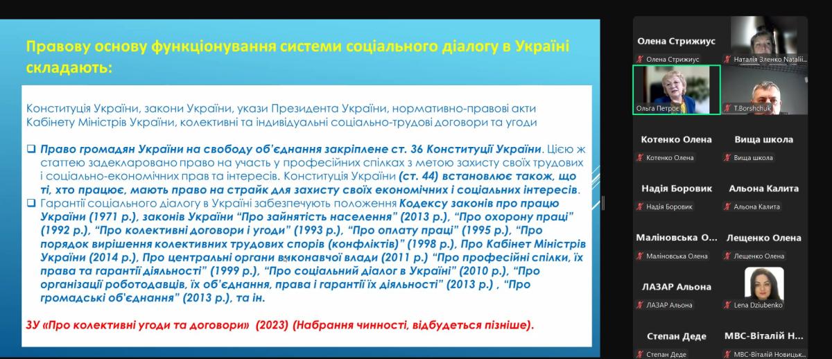 The Head of the Department of Humanities of Sumy branch of KhNUIA, Valentyna VASYLENKO, and Associate Professor of the same department, Nataliia ZLENKO, took part in a training on the topic: "Social dialogue as a mechanism of public governance in conditions of war, post-war reconstruction and Ukraine's acquisition of EU membership."