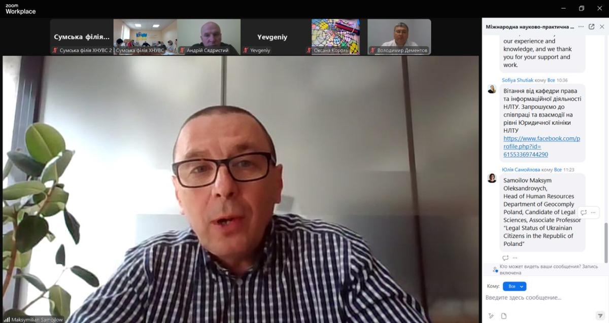 The conference participants were also addressed by Viktor Vasylenko, First Vice-Rector of KhNUIA, Doctor of Law, Associate Professor; Nina Linde, Director of the Institute of Economics of the Latvian Academy of Sciences; Serhii Lukash, Director of the Sumy Branch of KhNUIA, Doctor of Law, Professor, Honored Lawyer of Ukraine.