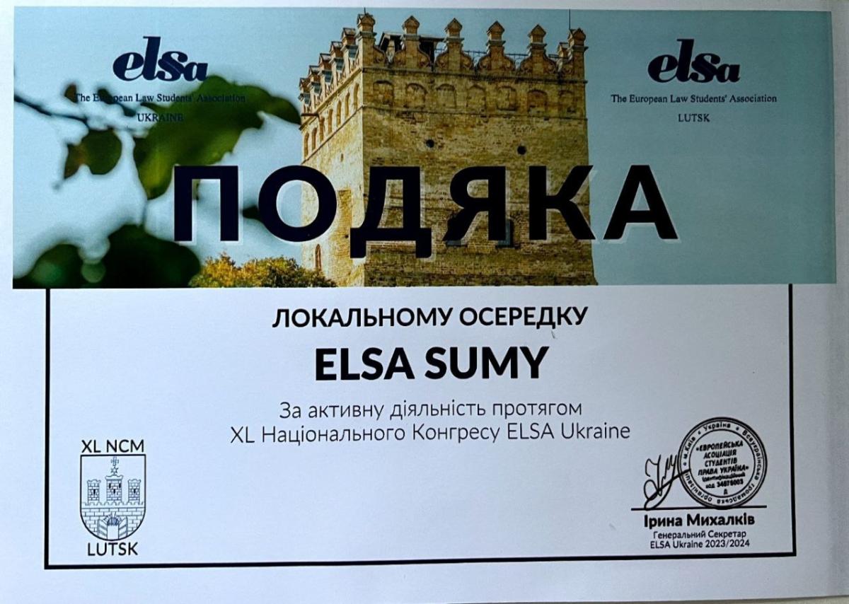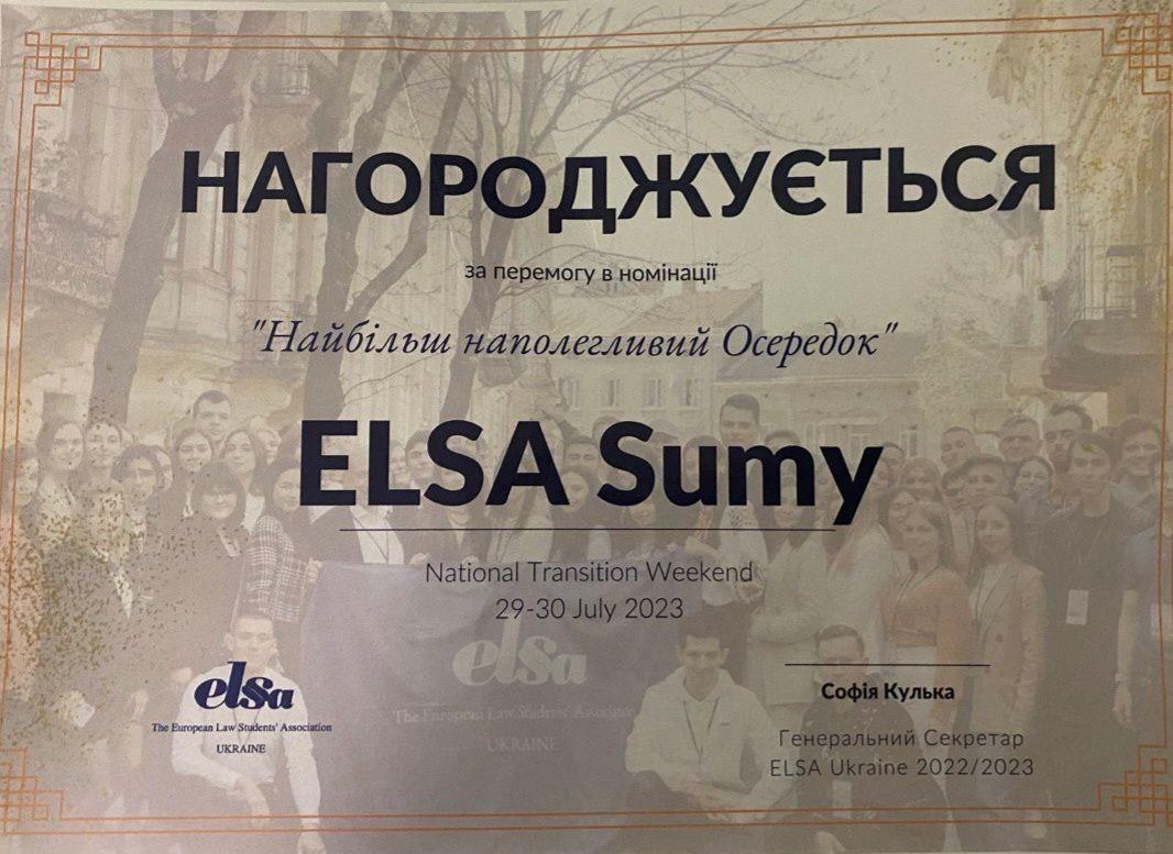 ELSA-Sumy діє в місті Суми з 2010 року. Сумський осередок розташований на базі Сумської філії Харківського національного університету внутрішніх справ.