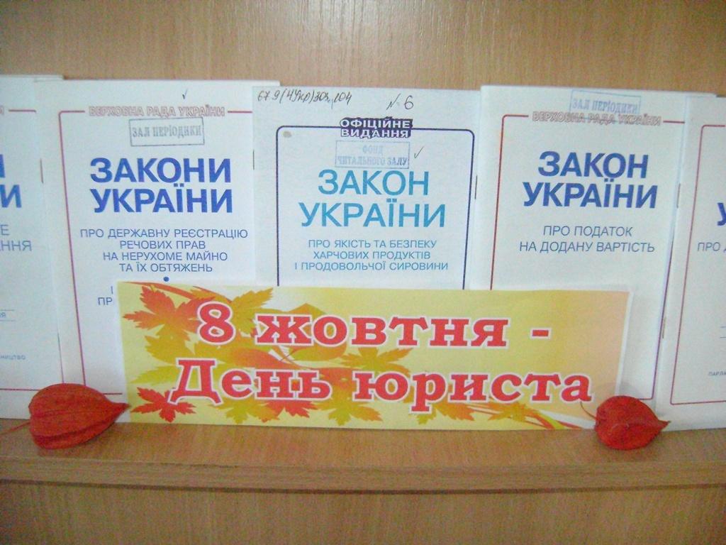Указом Президента України № 1022/97 від 16 вересня 1997 року, професія юриста в Україні отримала своє професійне свято – День юриста, яке в національному календарі відзначається 8 жовтня. Дата святкування вибрана не випадково: вважається, що цього дня в 1016 році Київський князь Ярослав Мудрий видав першу збірку законів «Руська правда».