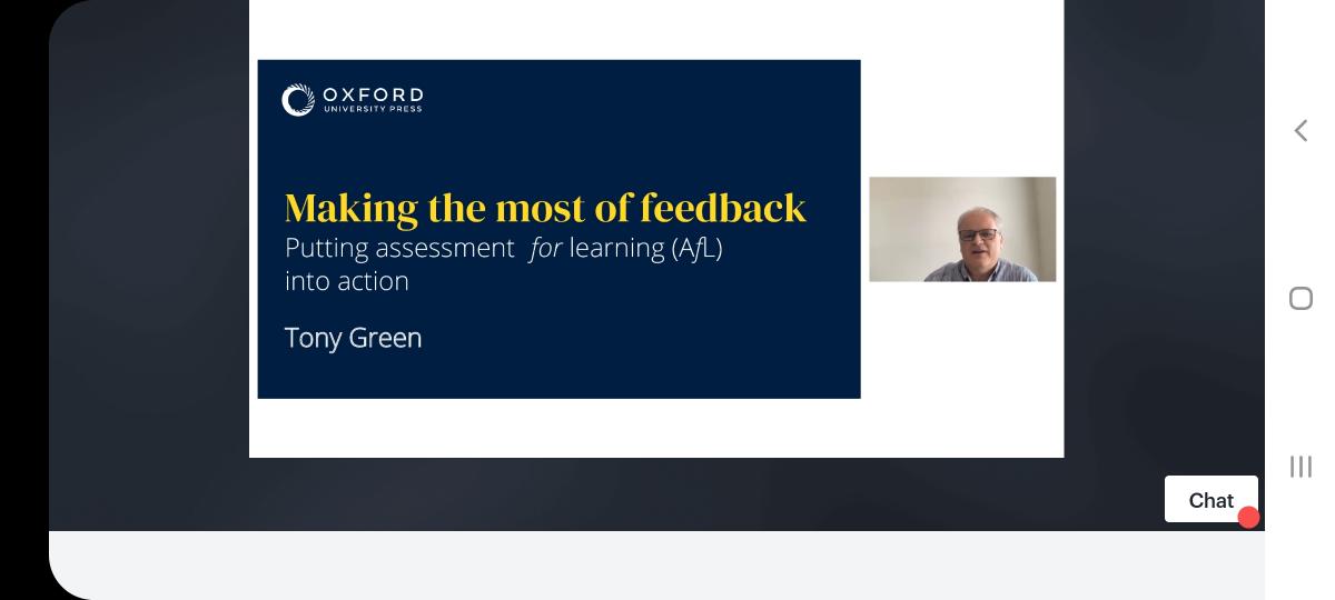 На пленарному засіданні були представлені для обговорення пропозиції щодо занять у класі, які підтримують три ключові практики, визначені дослідженнями, як основа успішного оцінювання навчання: діагностика; навчальні наміри; критерії успіху. Доповідь визвала жваву дискусію серед учасників вебінару, адже вищезазначена тема є вкрай актуальною для викладачів англійської мови як іноземної у різних країнах.