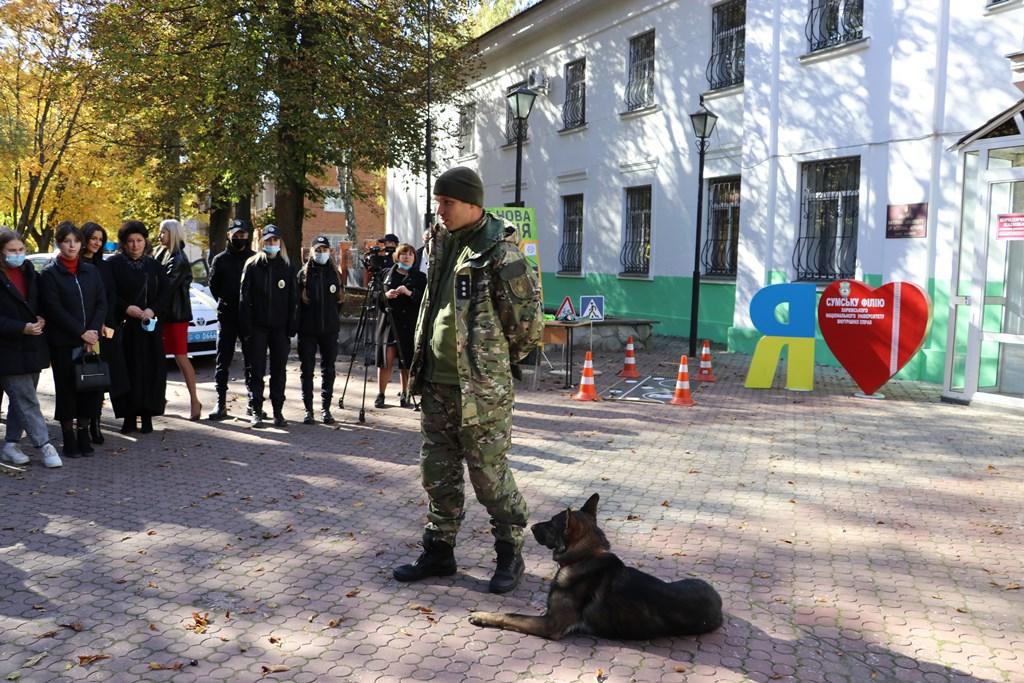 Абітурієнтам, які завітали на День відкритих дверей, була запропонована екскурсія по закладу. Випускники ознайомились із виставкою зброї та спеціальних засобів, що знаходяться на озброєнні управління «КОРД» ГУНП в Сумській області та управління патрульної поліції у Сумській області. Поліцейські-кінологи продемонстрували роботу службових собак із виявлення наркотичних засобів. Працював криміналістичний кабінет, зала судових засідань, лінгафонний кабінет. З творчими номерами перед гостями виступили студенти філії. Після чого було проведено екскурсію по базі № 2, де присутні ознайомилися з місцем проживанням та навчанням курсантів.